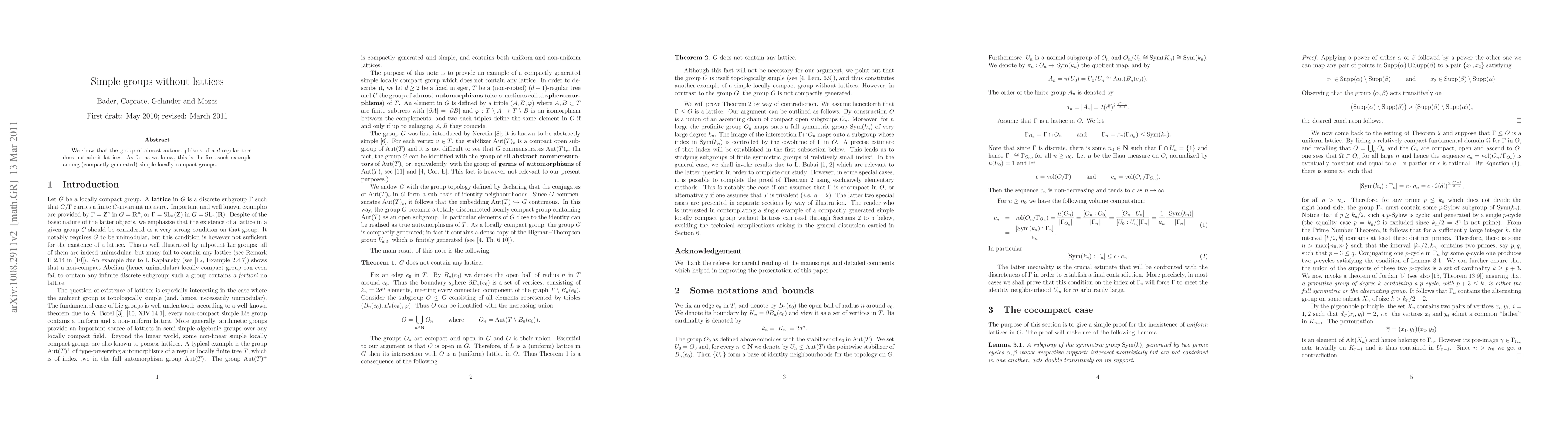 We show that the group of almost automorphisms of a d-regular tree does not admit lattices. As far as we know this is the first such example among (compactly generated) simple locally compact groups.