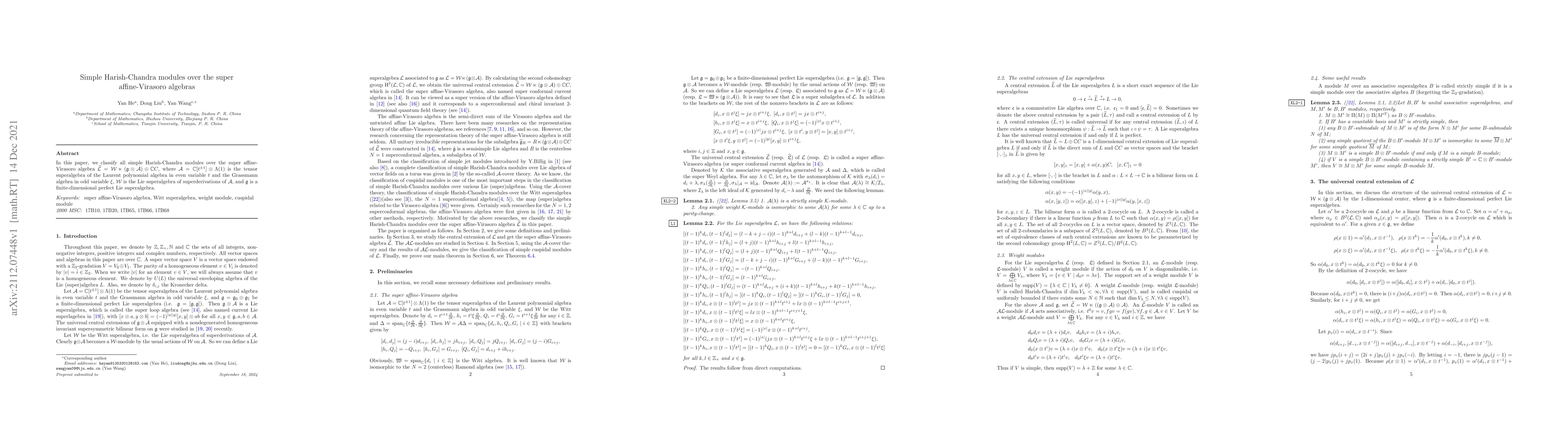 Researchers classified simple Harish-Chandra modules over a complex algebra, providing new insights into its representation theory. The study focused on the super affine-Virasoro algebra, a mathematical structure relevant to string theory and quantum field theory.