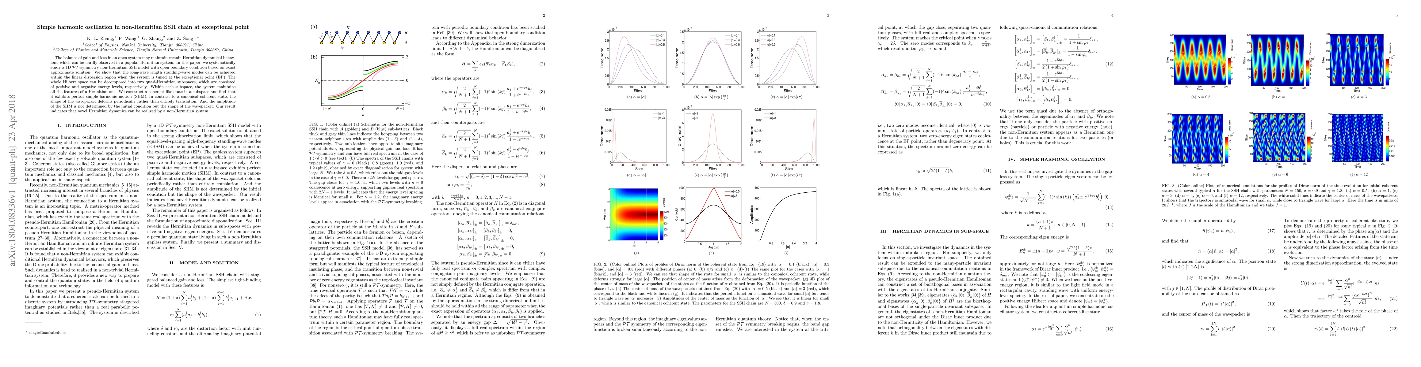 The balance of gain and loss in an open system may maintain certain Hermitian dynamical behaviors, which can be hardly observed in a popular Hermitian system. In this paper, we systematically study a 1D PT -symmetry non-Hermitian SSH model with open boundary condition based on exact approximate solution. We show that the long-wave length standing-wave modes can be achieved within the linear dispersion region when the system is tuned at the exceptional point (EP). The whole Hilbert space can be decomposed into two quasi-Hermitian subspaces, which are consisted of positive and negative energy levels, respectively. Within each subspace, the system maintains all the features of a Hermitian one. We construct a coherent-like state in a subspace and find that it exhibits perfect simple harmonic motion (SHM). In contrast to a canonical coherent state, the shape of the wavepacket deforms periodically rather than entirely translation. And the amplitude of the SHM is not determined by the initial condition but the shape of the wavepacket. Our result indicates that novel Hermitian dynamics can be realized by a non-Hermitian system.