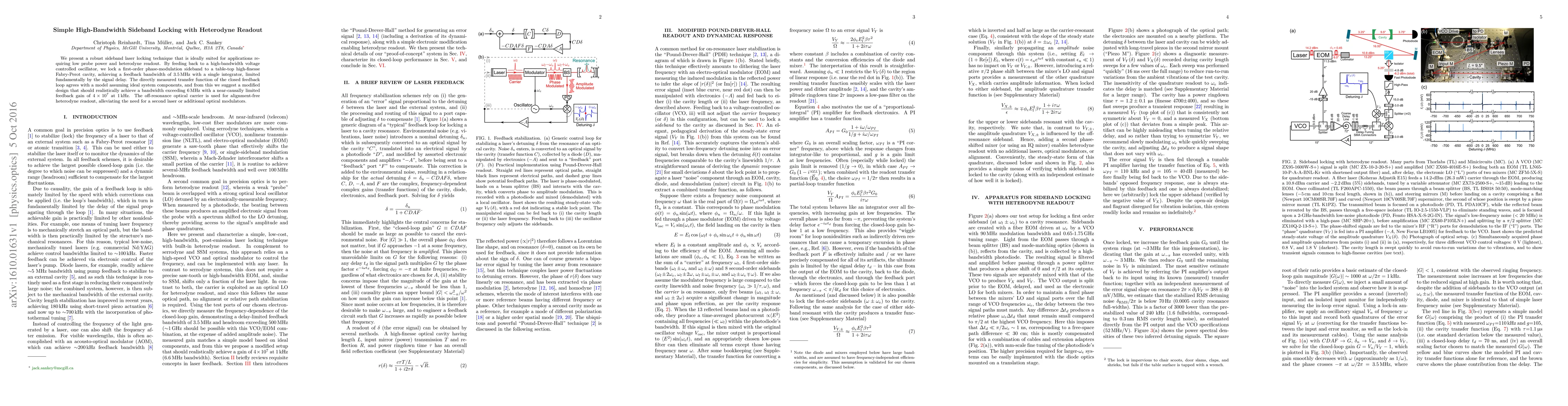 This paper introduces a high-bandwidth sideband locking technique for low probe power applications, achieving 3.5 MHz feedback bandwidth. It proposes a design modification to exceed 6 MHz with a high feedback gain, and utilizes the off-resonance optical carrier for alignment-free heterodyne readout.