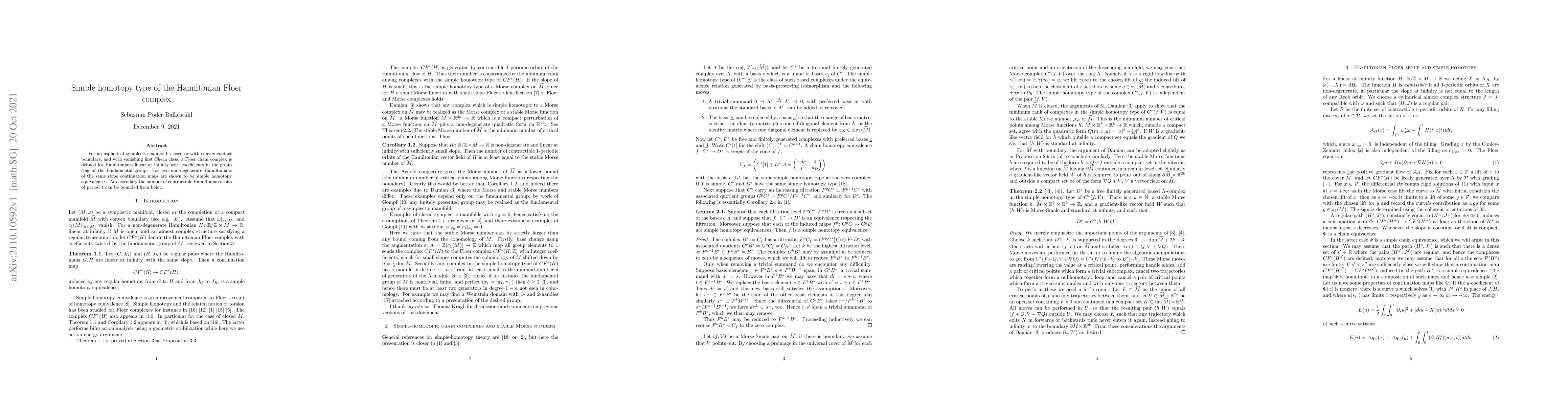For an aspherical symplectic manifold, closed or with convex contact boundary, and with vanishing first Chern class, a Floer chain complex is defined for Hamiltonians linear at infinity with coefficients in the group ring of the fundamental group. For two non-degenerate Hamiltonians of the same slope continuation maps are shown to be simple homotopy equivalences. As a corollary the number of contractible Hamiltonian orbits of period 1 can be bounded from below.