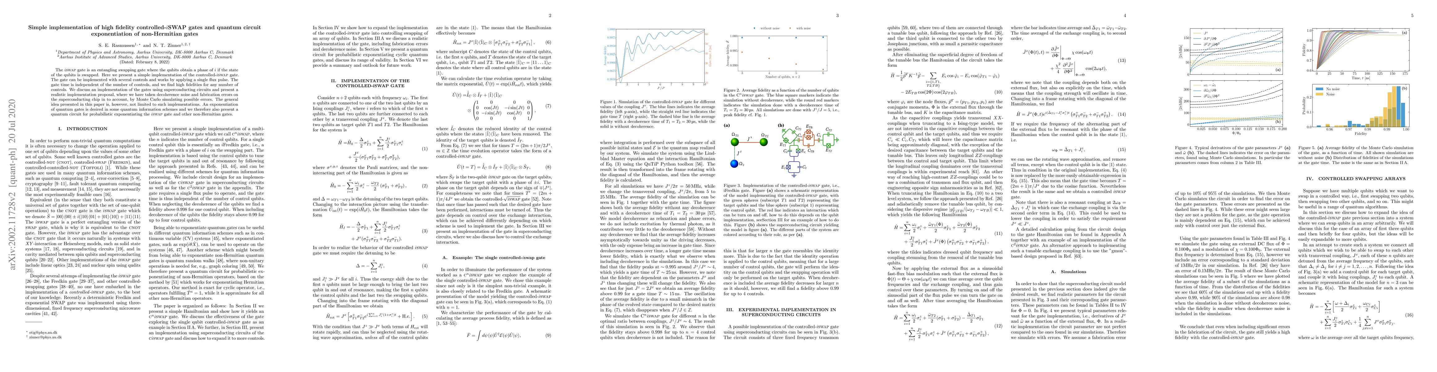 The $i$swap gate is an entangling swapping gate where the qubits obtain a phase of $i$ if the state of the qubits is swapped. Here we present a simple implementation of the controlled-$i$swap gate. The gate can be implemented with several controls and works by applying a single flux pulse. The gate time is independent of the number of controls, and we find high fidelities for any number of controls. We discuss an implementation of the gates using superconducting circuits and present a realistic implementation proposal, where we have taken decoherence noise and fabrication errors on the superconducting chip in to account, by Monte Carlo simulating possible errors. The general idea presented in this paper is, however, not limited to such implementations. An exponentiation of quantum gates is desired in some quantum information schemes and we therefore also present a quantum circuit for probabilistic exponentiating the $i$swap gate and other non-Hermitian gates.