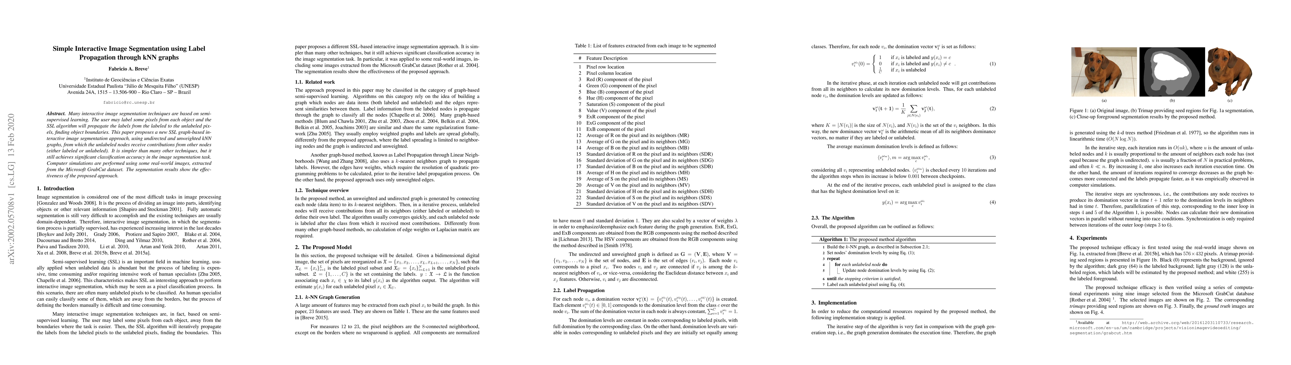 This paper introduces a simple, graph-based interactive image segmentation method using label propagation through kNN graphs. It achieves significant accuracy with fewer complexities compared to other techniques, validated through real-world images from the Microsoft GrabCut dataset.