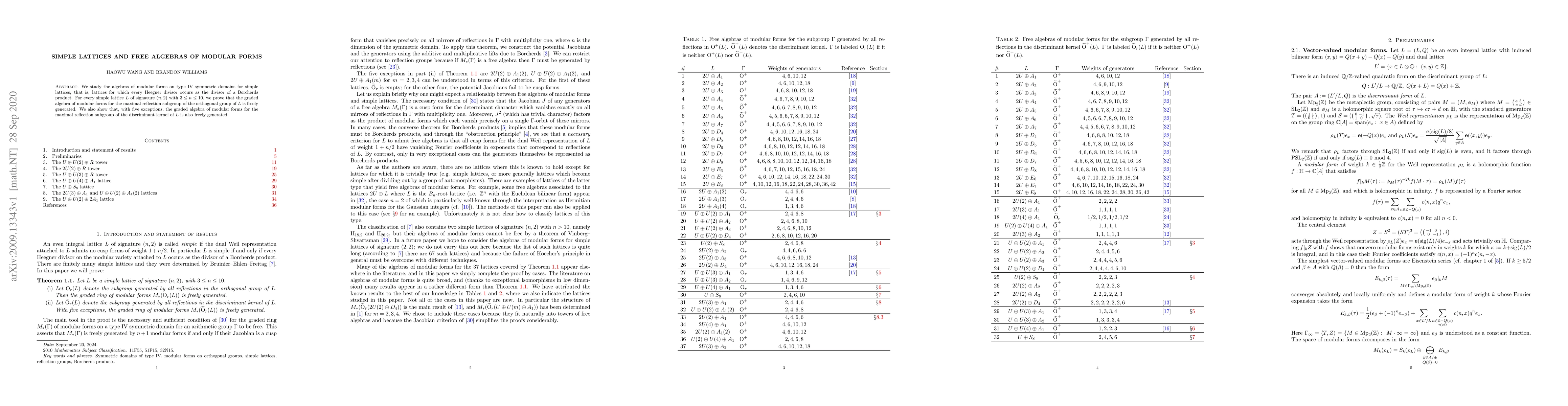 This paper investigates modular forms on type IV symmetric domains for simple lattices, proving that the graded algebra of modular forms for the maximal reflection subgroup of the orthogonal group of these lattices is freely generated, with five exceptions for the discriminant kernel subgroup.