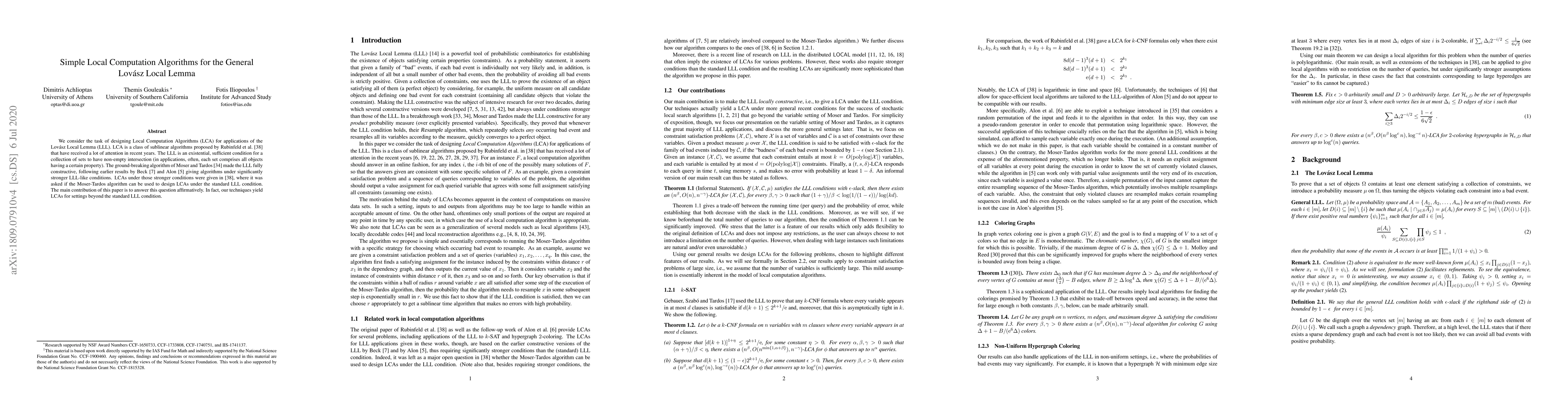 This paper develops Local Computation Algorithms (LCA) for applications of the general Lovász Local Lemma (LLL), affirmatively addressing whether the Moser-Tardos algorithm can be adapted for standard LLL conditions. The authors' techniques extend beyond the standard LLL, providing constructive solutions for broader settings.