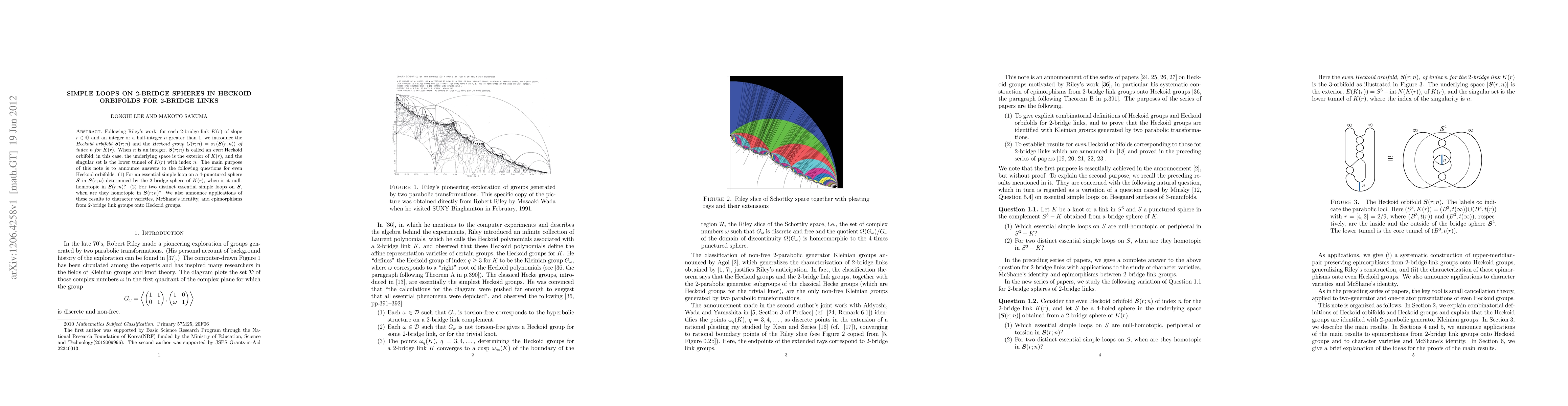 Following Riley's work, for each 2-bridge link $K(r)$ of slope $r\in\QQ$ and an integer or a half-integer $n$ greater than 1, we introduce the {\it Heckoid orbifold $\orbs(r;n)$} and the {\it Heckoid group $\Hecke(r;n)=\pi_1(\orbs(r;n))$ of index $n$ for $K(r)$}. When $n$ is an integer, $\orbs(r;n)$ is called an {\it even} Heckoid orbifold; in this case, the underlying space is the exterior of $K(r)$, and the singular set is the lower tunnel of $K(r)$ with index $n$. The main purpose of this note is to announce answers to the following questions for even Heckoid orbifolds. (1) For an essential simple loop on a 4-punctured sphere $\PConway$ in $\orbs(r;n)$ determined by the 2-bridge sphere of $K(r)$, when is it null-homotopic in $\orbs(r;n)$? (2) For two distinct essential simple loops on $\PConway$, when are they homotopic in $\orbs(r;n)$? We also announce applications of these results to character varieties, McShane's identity, and epimorphisms from 2-bridge link groups onto Heckoid groups.