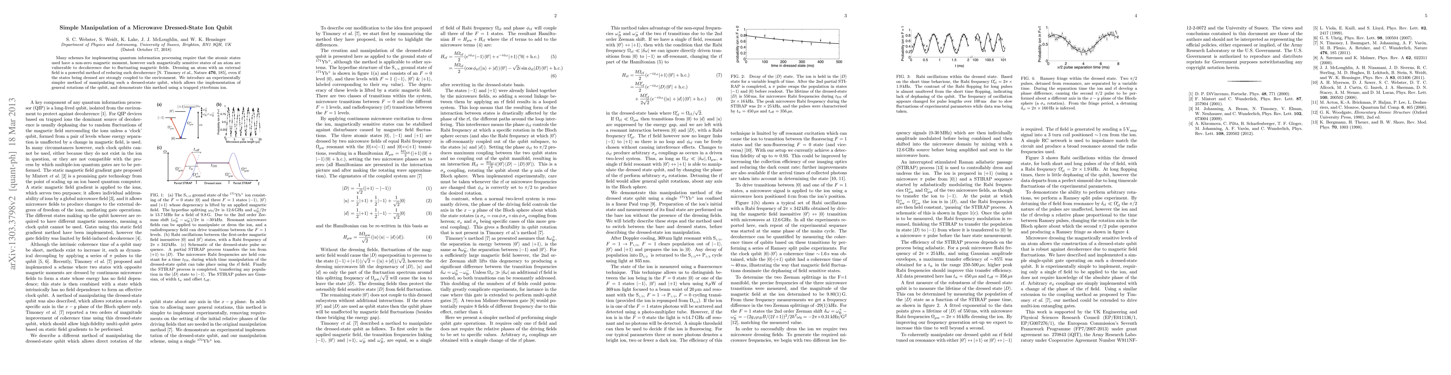 This paper presents a simpler method for manipulating a microwave dressed-state ion qubit, reducing decoherence from magnetic fields. The technique allows for general qubit rotations and is demonstrated experimentally using a trapped ytterbium ion.
