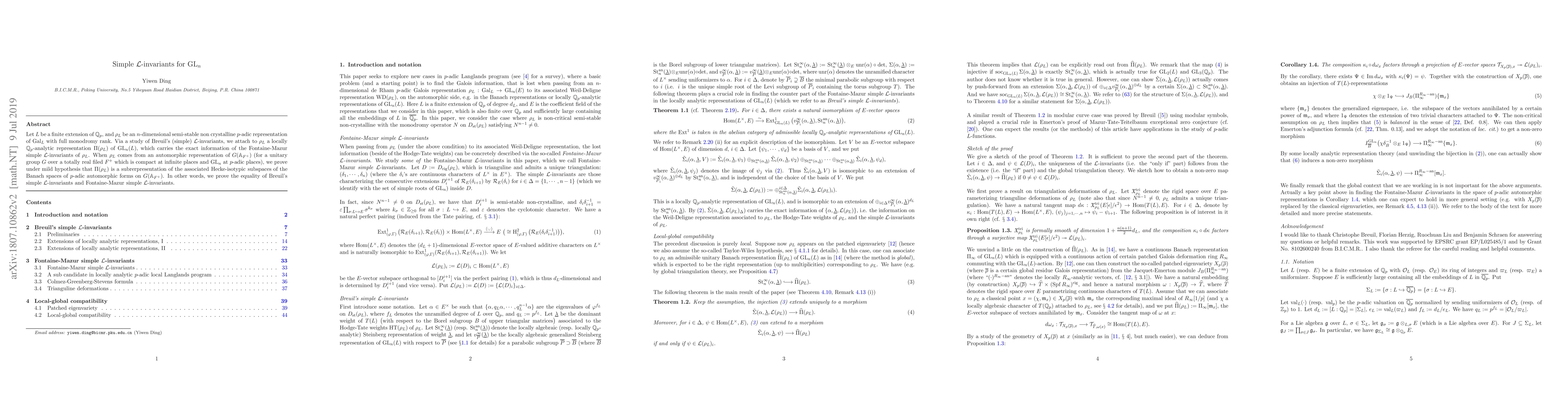 Let $L$ be a finite extension of $\mathbb{Q}_p$, and $\rho_L$ be an $n$-dimensional semi-stable non crystalline $p$-adic representation of $\mathrm{Gal}_L$ with full monodromy rank. Via a study of Breuil's (simple) $\mathcal{L}$-invariants, we attach to $\rho_L$ a locally $\mathbb{Q}_p$-analytic representation $\Pi(\rho_L)$ of $\mathrm{GL}_n(L)$, which carries the exact information of the Fontaine-Mazur simple $\mathcal{L}$-invariants of $\rho_L$. When $\rho_L$ comes from an automorphic representation of $G(\mathbb{A}_{F^+})$ (for a unitary group $G$ over a totally real filed $F^+$ which is compact at infinite places and $\mathrm{GL}_n$ at $p$-adic places), we prove under mild hypothesis that $\Pi(\rho_L)$ is a subrerpresentation of the associated Hecke-isotypic subspaces of the Banach spaces of $p$-adic automorphic forms on $G(\mathbb{A}_{F^+})$. In other words, we prove the equality of Breuil's simple $\mathcal{L}$-invariants and Fontaine-Mazur simple $\mathcal{L}$-invariants.