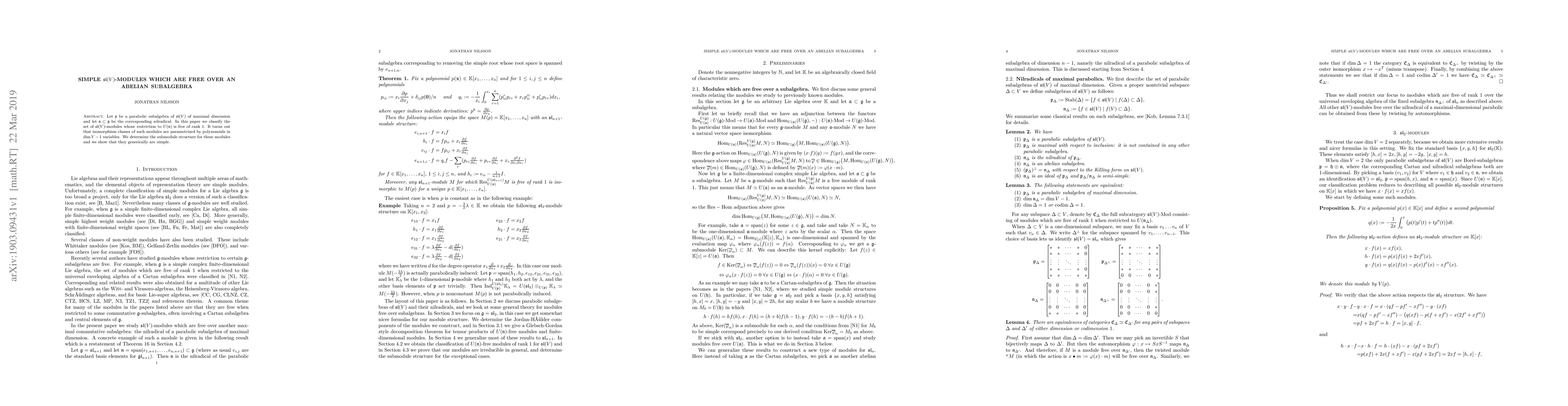 Let $\mathfrak{p}$ be a parabolic subalgebra of $\mathfrak{sl}(V)$ of maximal dimension and let $\mathfrak{n} \subset \mathfrak{p}$ be the corresponding nilradical. In this paper we classify the set of $\mathfrak{sl}(V)$-modules whose restriction to $U(\mathfrak{n})$ is free of rank $1$. It turns out that isomorphism classes of such modules are parametrized by polynomials in $\dim V-1$ variables. We determine the submodule structure for these modules and we show that they generically are simple.