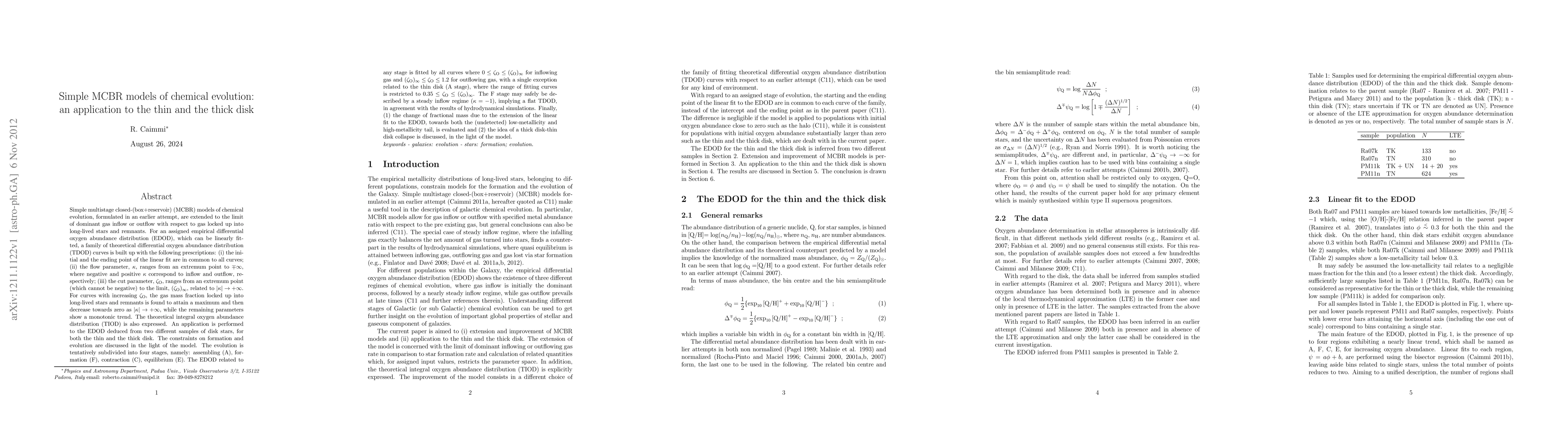 Simple MCBR models of chemical evolution are extended to the limit of dominant gas inflow or outflow with respect to gas locked up into long-lived stars and remnants. For an assigned empirical differential oxygen abundance distribution, which can be linearly fitted, a family of theoretical curves is built up with assigned prescriptions. For curves with increasing cut parameter, the gas mass fraction locked up into long-lived stars and remnants is found to attain a maximum and then decrease towards zero as the flow tends to infinity, while the remaining parameters show a monotonic trend. The theoretical integral oxygen abundance distribution is also expressed. An application is performed to the empirical distribution deduced from two different samples of disk stars, for both the thin and the thick disk. The constraints on formation and evolution are discussed in the light of the model. The evolution is tentatively subdivided into four stages, A, F, C, E. The empirical distribution related to any stage is fitted by all curves for a wide range of the cut parameter. The F stage may safely be described by a steady inflow regime, implying a flat theoretical distribution, in agreement with the results of hydrodynamical simulations. Finally, (1) the change of fractional mass due to the extension of the linear fit to the empirical distribution, towards both the (undetected) low-metallicity and high-metallicity tail, is evaluated and (2) the idea of a thick disk-thin disk collapse is discussed, in the light of the model.