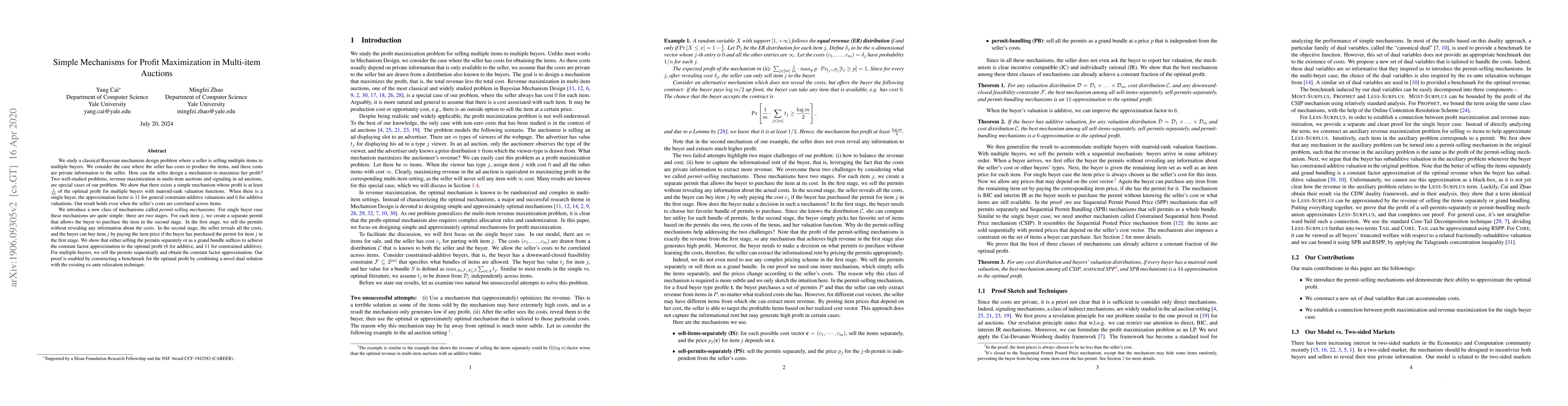 This paper studies profit maximization mechanisms in multi-item auctions, introducing a new class of permit-selling mechanisms. The authors demonstrate that these mechanisms achieve constant factor approximations to optimal profit under various buyer valuation scenarios, even when costs are correlated across items.