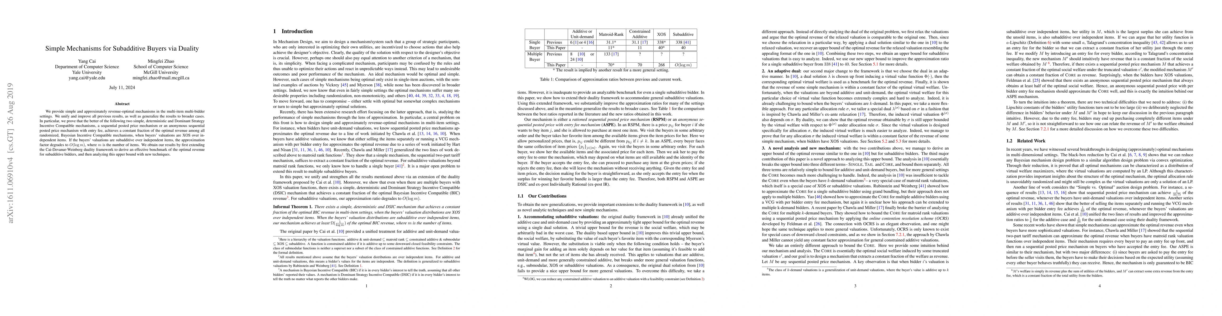This research paper proposes simple mechanisms for buyers with subadditive valuations to achieve a constant fraction of optimal revenue, improving upon previous results. It also generalizes the findings to broader cases.