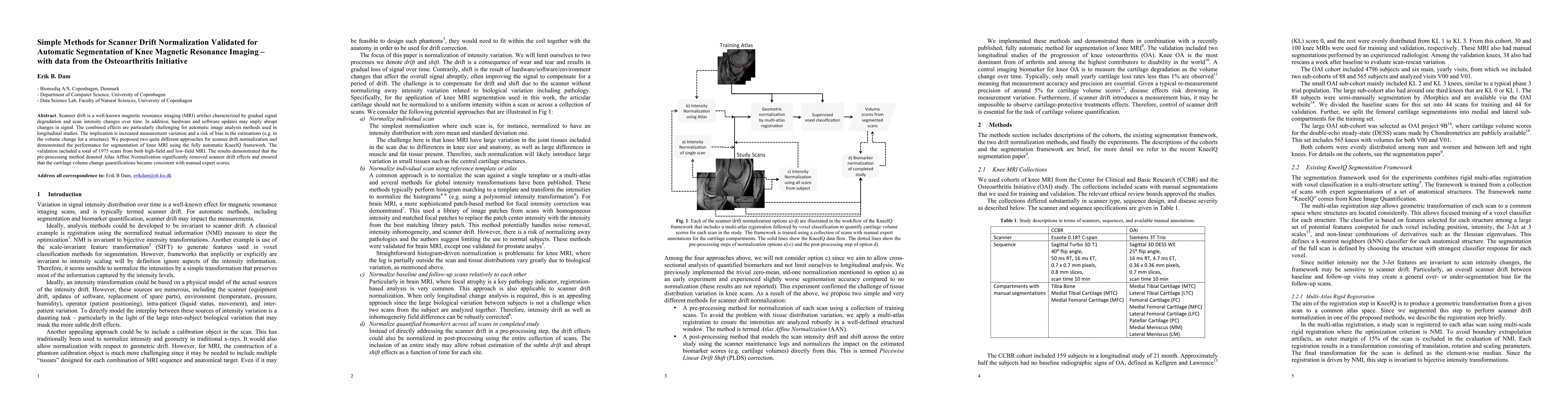 This research proposes two methods to address scanner drift in knee MRI scans, which causes signal degradation and intensity changes over time. The methods, tested on 1975 scans from high-field and low-field MRI, significantly improved cartilage volume change quantification consistency with expert scores, ensuring more reliable automatic segmentation.