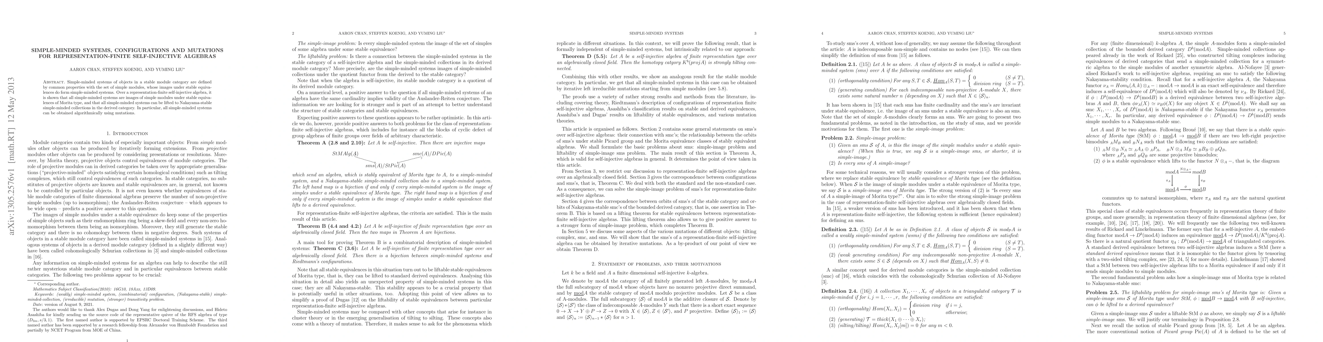 Summary: This paper explores simple-minded systems in stable module categories over representation-finite self-injective algebras, demonstrating they arise from simple modules and can be algorithmically constructed via mutations. It also shows these systems can be lifted to Nakayama-stable collections in the derived category.