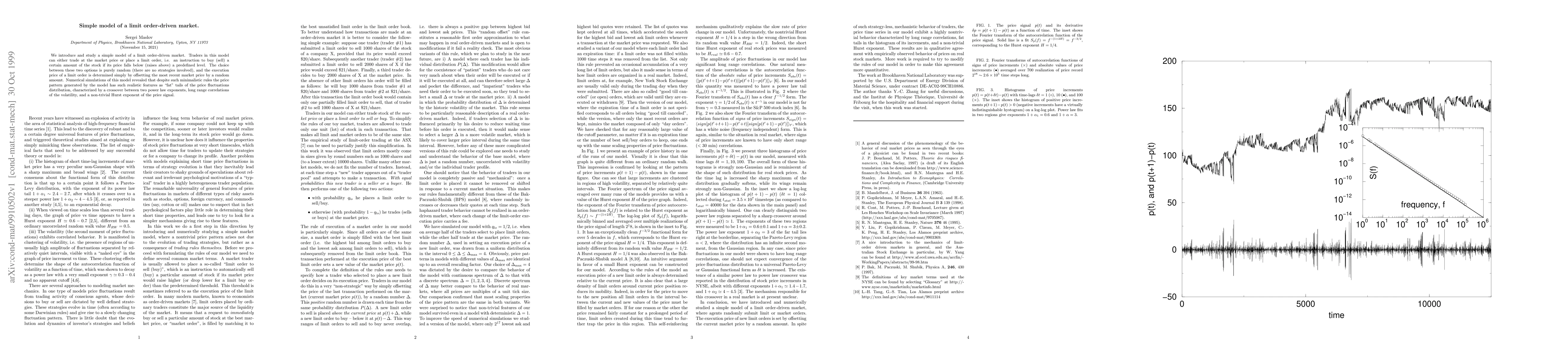 A simple model of a limit order-driven market shows realistic price patterns despite minimal rules, including fat tails, long-range correlations, and non-trivial Hurst exponent.