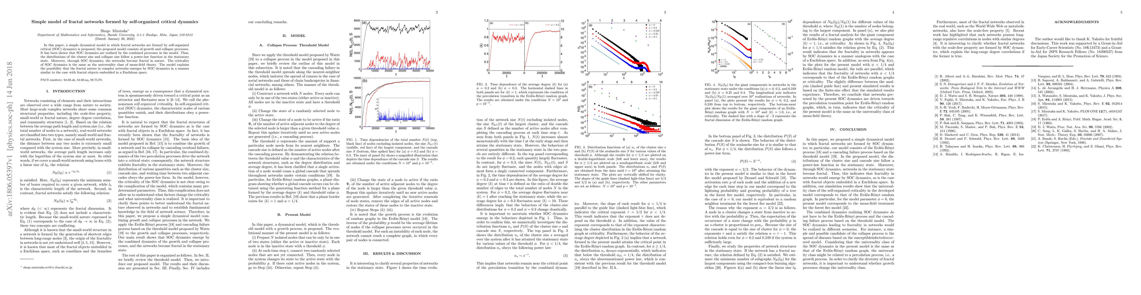 This paper proposes a simple dynamical model where fractal networks emerge through self-organized critical (SOC) dynamics involving growth and collapse processes, resulting in power-law distributions and fractal nature in the stationary state, aligning with mean-field theory's universality class.