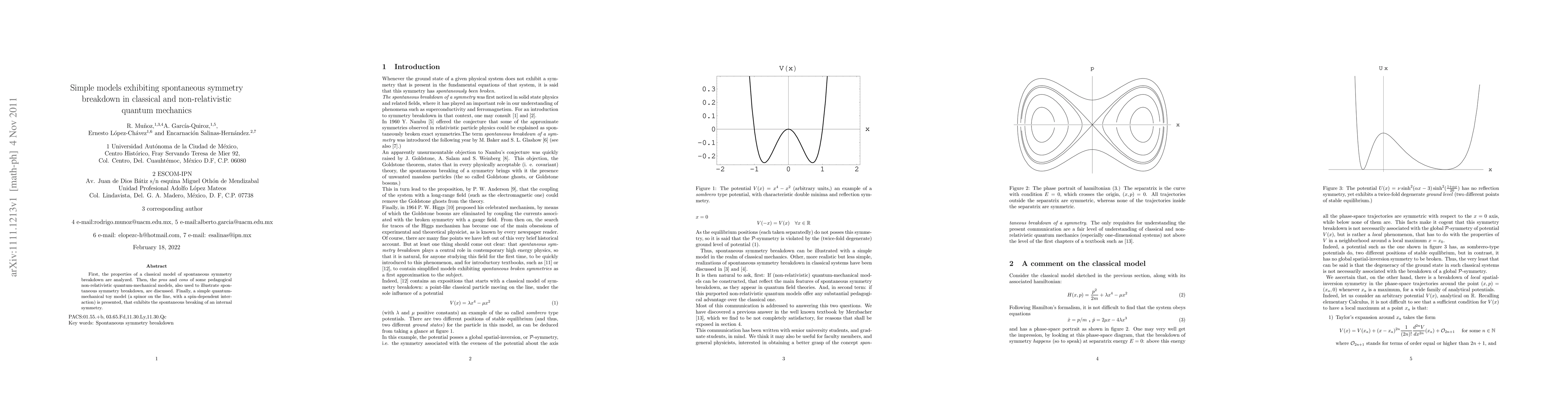 This paper analyzes a classical model demonstrating spontaneous symmetry breakdown and evaluates various non-relativistic quantum models used to illustrate the same phenomenon. It concludes with a simple quantum toy model showing spontaneous symmetry breakdown in an internal spin-dependent interaction.