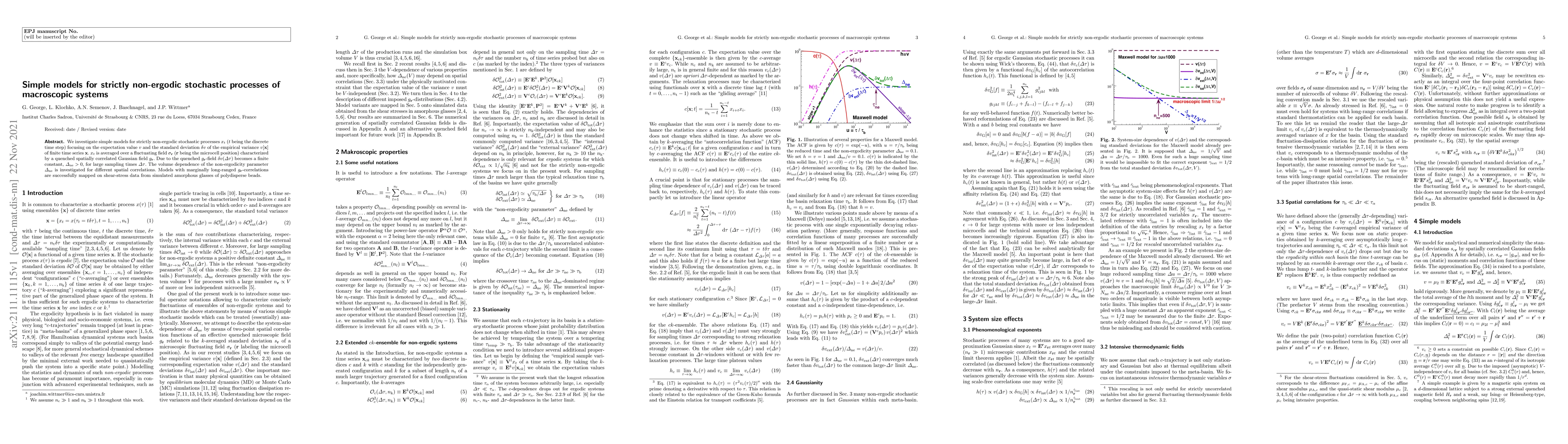 We investigate simple models for strictly non-ergodic stochastic processes $x_t$ ($t$ being the discrete time step) focusing on the expectation value $v$ and the standard deviation $\delta v$ of the empirical variance $v[x]$ of finite time series $x$. $x_t$ is averaged over a fluctuating field $\sigma_{r}$ ($r$ being the microcell position) characterized by a quenched spatially correlated Gaussian field. Due to the quenched field $\delta v(\Delta t)$ becomes a finite constant, $\Delta_{ne} > 0$, for large sampling times $\Delta t$. The volume dependence of the non-ergodicity parameter $\Delta_{ne}$ is investigated for different spatial correlations. Models with marginally long-ranged $\fr$-correlations are successfully mapped on shear-stress data from simulated amorphous glasses of polydisperse beads.