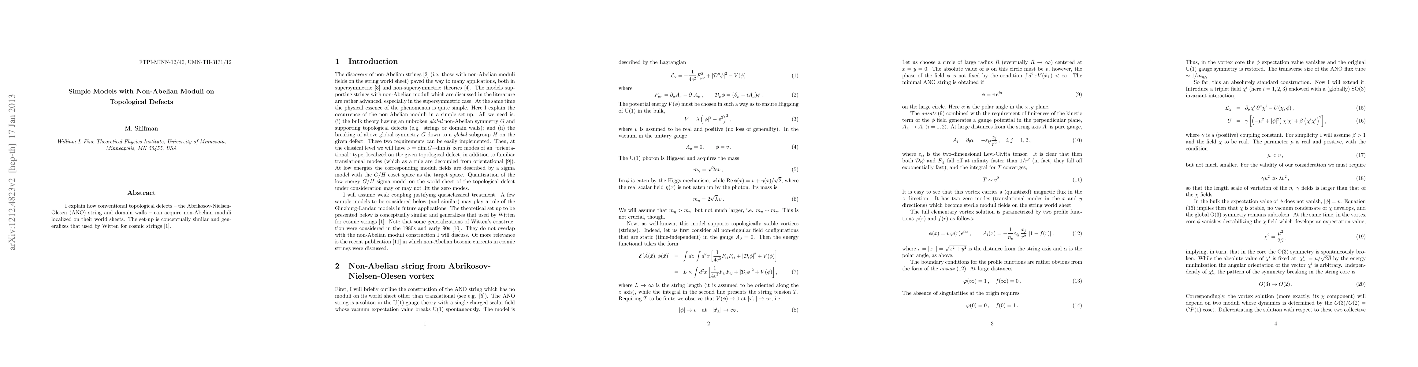 I explain how conventional topological defects -- the Abrikosov-Nielsen-Olesen (ANO) string and domain walls -- can acquire non-Abelian moduli localized on their world sheets. The set-up is conceptually similar and generalizes that used by Witten for cosmic strings.