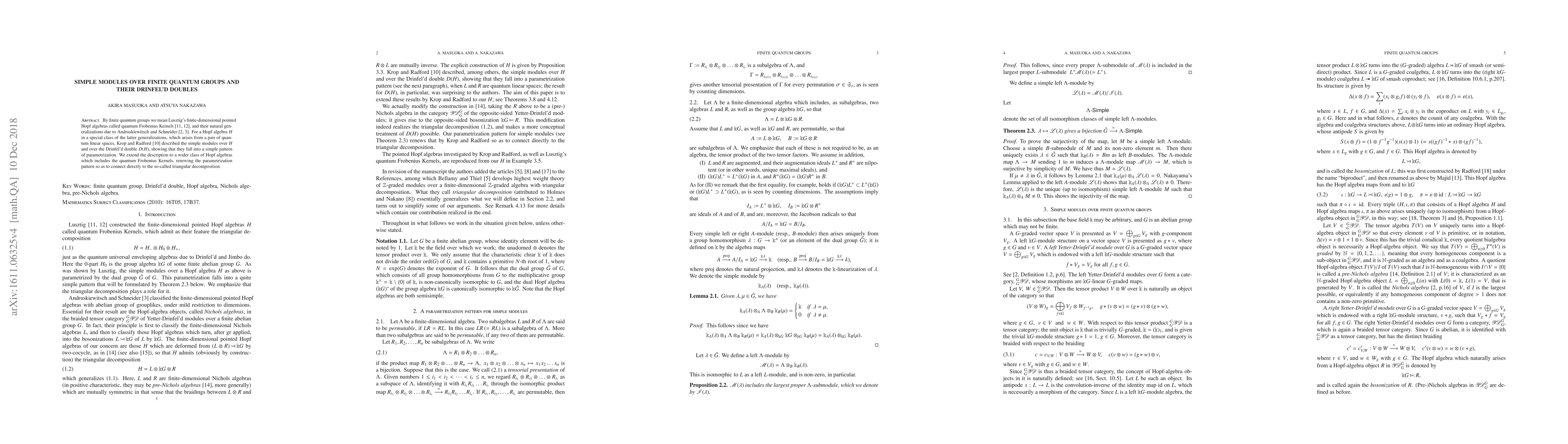 This paper extends the description of simple modules over a wider class of finite quantum groups, including quantum Frobenius Kernels, and their Drinfel'd doubles, revealing a new parametrization pattern linked to triangular decomposition. The original work by Krop and Radford on a special class of Hopf algebras is generalized here.