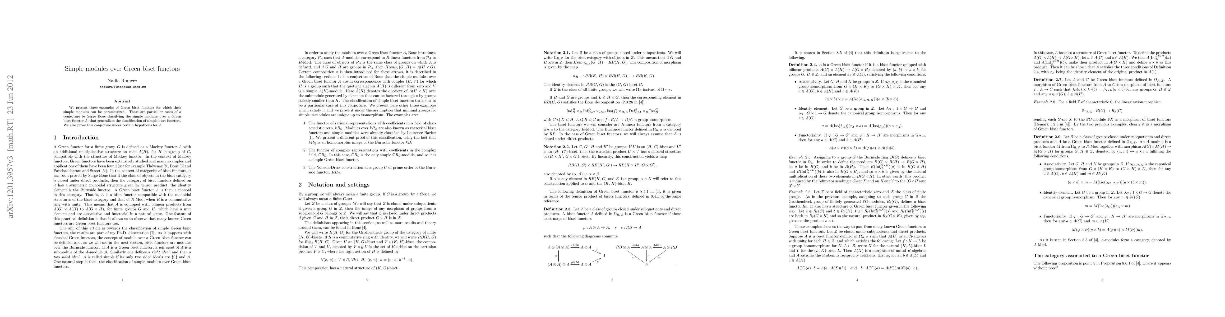 The paper provides examples demonstrating how simple modules over specific Green biset functors can be parametrized, supporting a conjecture by Serge Bouc classifying such simple modules. The conjecture is also proven under certain conditions for these functors.