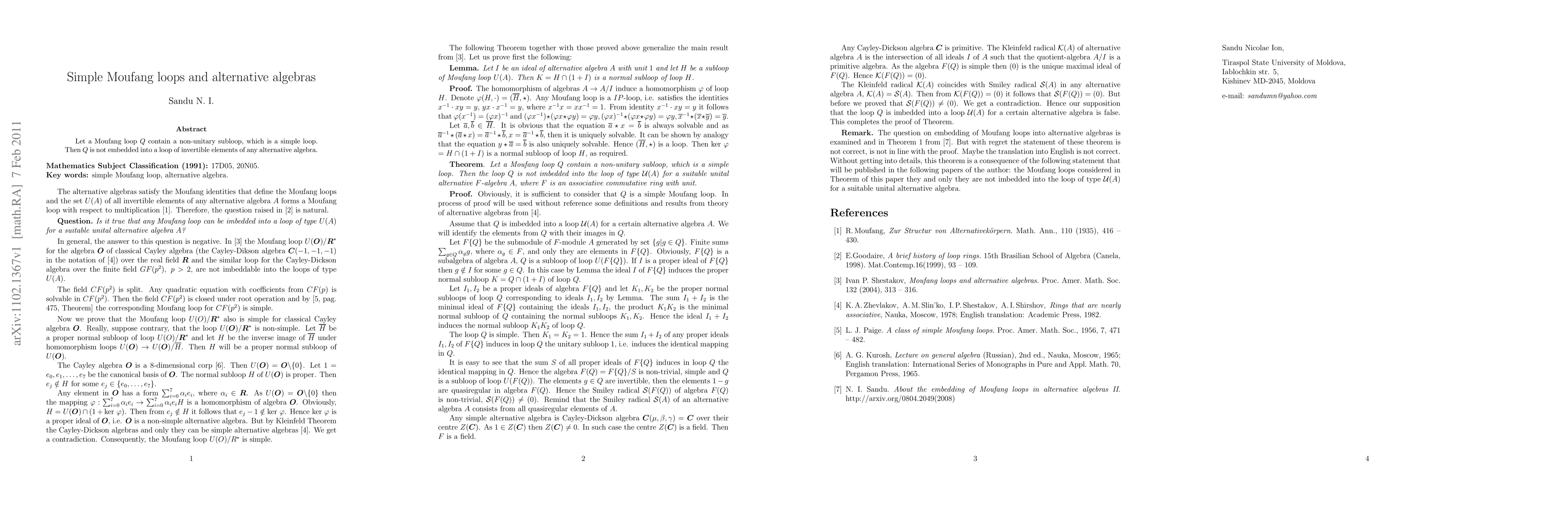 A Moufang loop that contains a non-unitary simple loop cannot be embedded into an alternative algebra of invertible elements. This discovery challenges the possibility of certain loops being part of alternative algebras.