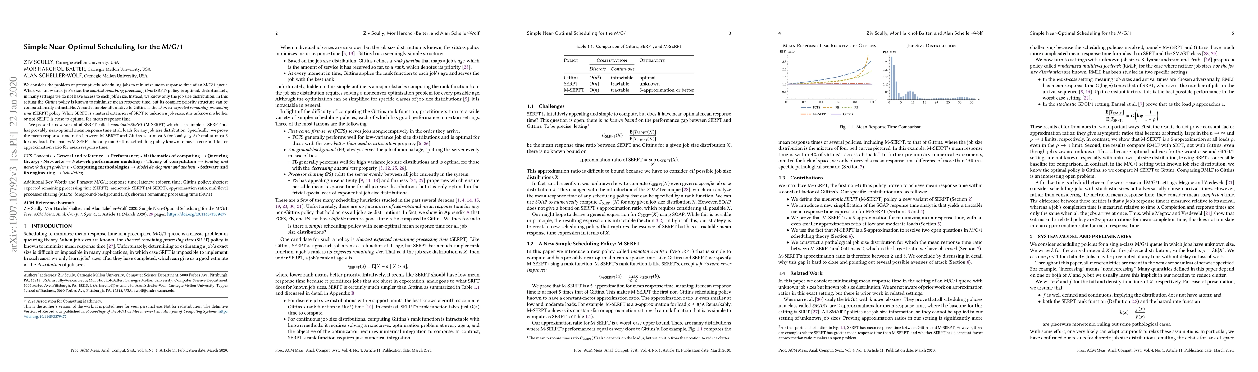 We consider the problem of preemptively scheduling jobs to minimize mean response time of an M/G/1 queue. When we know each job's size, the shortest remaining processing time (SRPT) policy is optimal. Unfortunately, in many settings we do not have access to each job's size. Instead, we know only the job size distribution. In this setting the Gittins policy is known to minimize mean response time, but its complex priority structure can be computationally intractable. A much simpler alternative to Gittins is the shortest expected remaining processing time (SERPT) policy. While SERPT is a natural extension of SRPT to unknown job sizes, it is unknown whether or not SERPT is close to optimal for mean response time. We present a new variant of SERPT called monotonic SERPT (M-SERPT) which is as simple as SERPT but has provably near-optimal mean response time at all loads for any job size distribution. Specifically, we prove the mean response time ratio between M-SERPT and Gittins is at most 3 for load $\rho \leq 8/9$ and at most 5 for any load. This makes M-SERPT the only non-Gittins scheduling policy known to have a constant-factor approximation ratio for mean response time.
