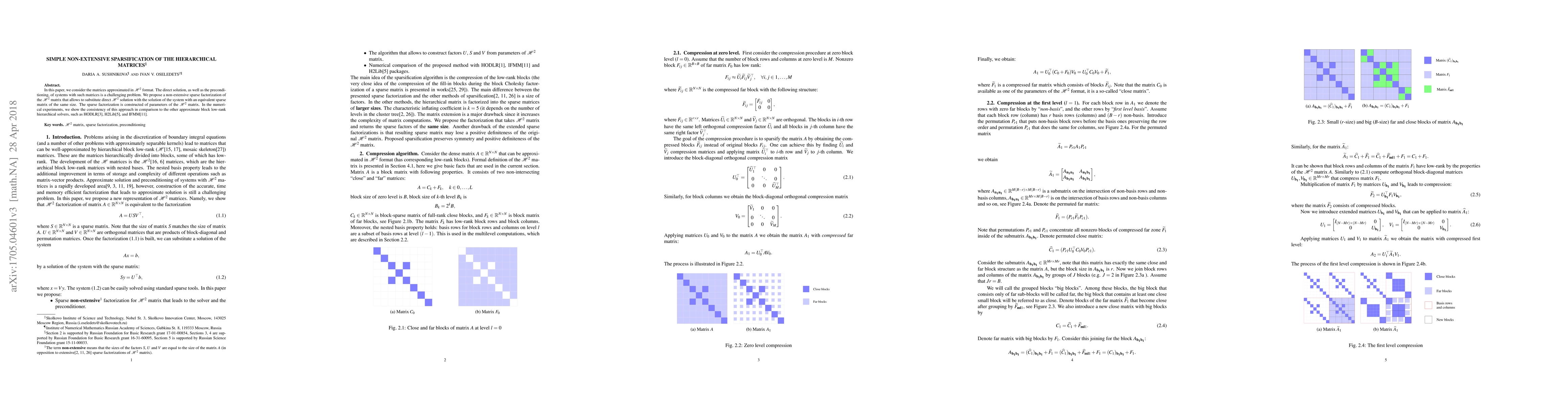 This paper proposes a non-extensive sparse factorization method for H2-approximated matrices, enabling the substitution of direct H2 solutions with equivalent sparse matrices. Numerical experiments demonstrate the consistency of this approach compared to other hierarchical solvers.