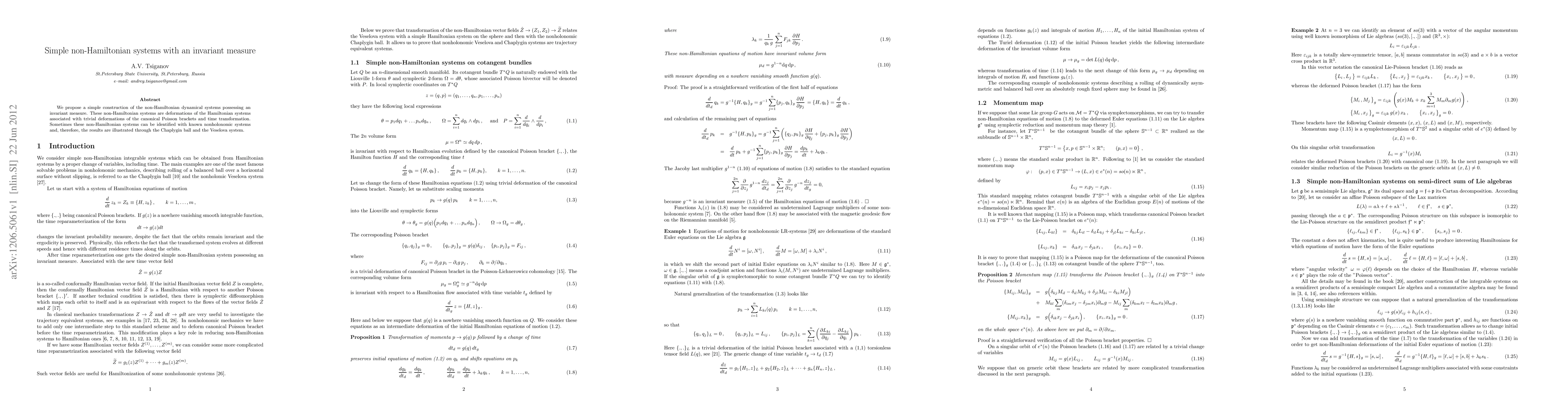 This paper constructs simple non-Hamiltonian dynamical systems with an invariant measure by deforming Hamiltonian systems via trivial deformations of canonical Poisson brackets and time transformation. Examples include the Chaplygin ball and the Veselova system, illustrating the proposed construction.