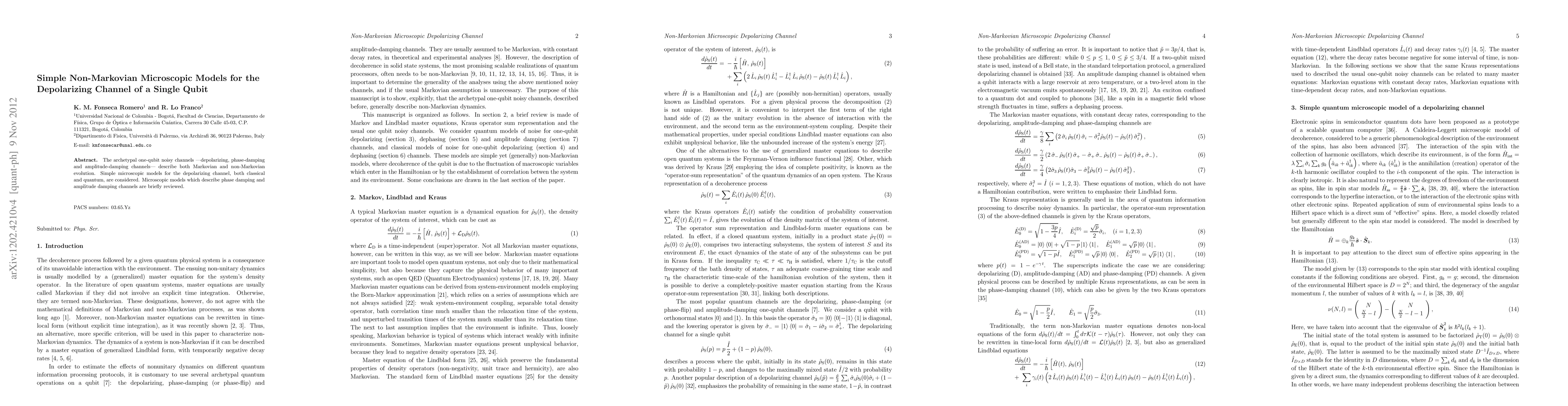 Summary: This paper explores simple non-Markovian microscopic models for the depolarizing channel of a single qubit, contrasting them with classical and quantum models, and briefly reviews analogous models for phase-damping and amplitude-damping channels.
