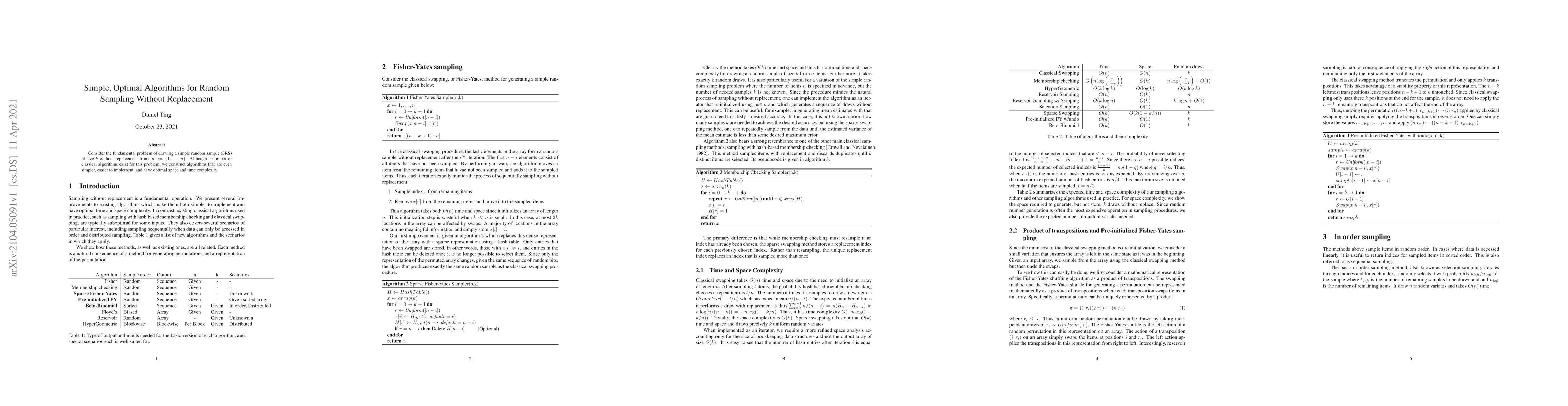 Consider the fundamental problem of drawing a simple random sample of size k without replacement from [n] := {1, . . . , n}. Although a number of classical algorithms exist for this problem, we construct algorithms that are even simpler, easier to implement, and have optimal space and time complexity.