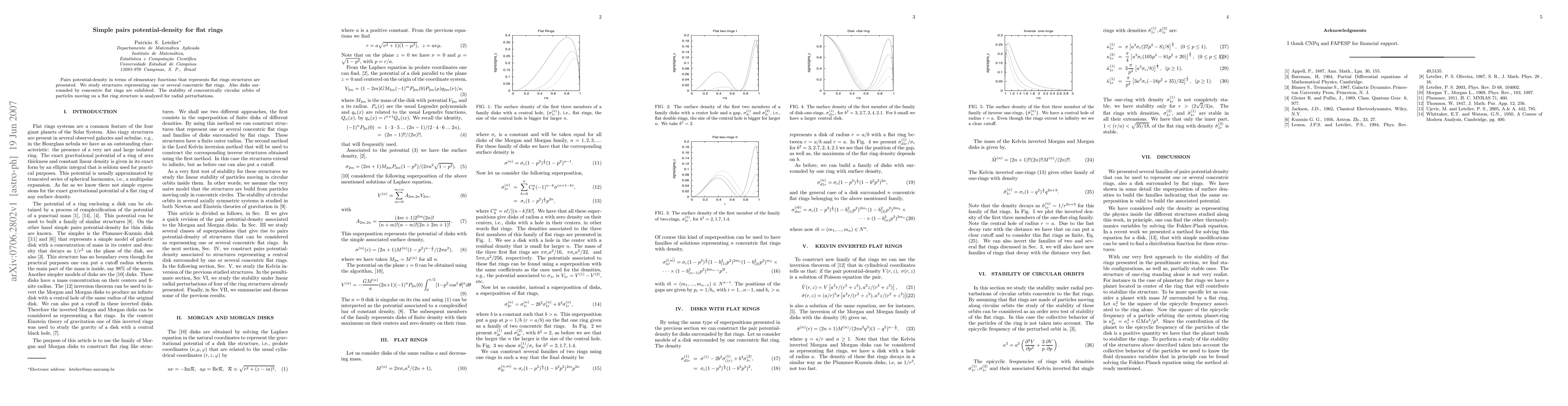 This paper introduces a simple pairs potential-density for flat ring structures using elementary functions, and examines the stability of concentric circular orbits under radial perturbations for particles moving within these rings. It also explores configurations involving concentric rings and disks surrounded by flat rings.