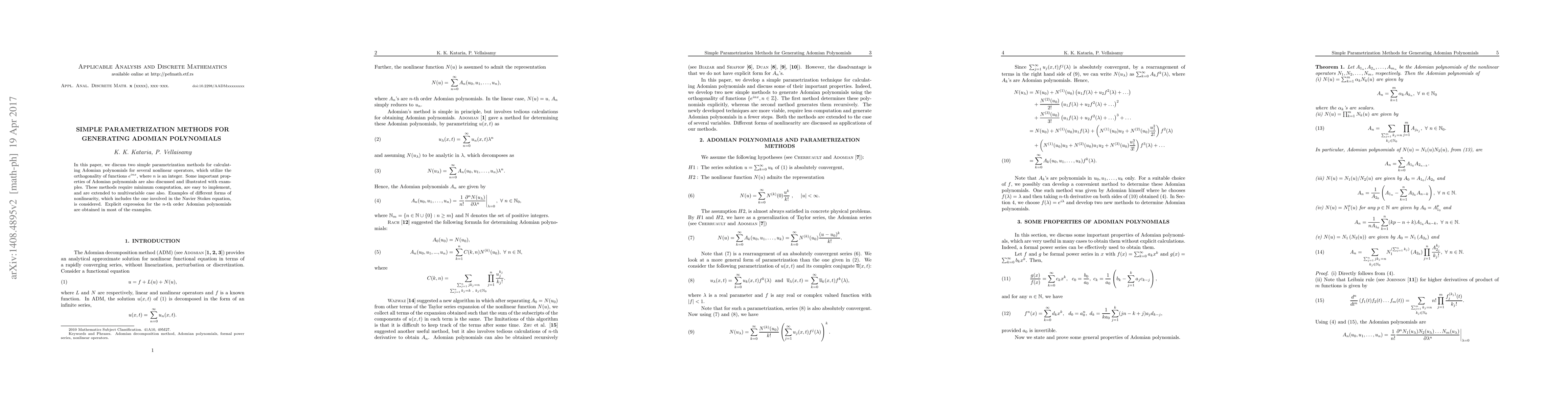 This paper presents two straightforward parametrization methods for computing Adomian polynomials for various nonlinear operators, leveraging the orthogonality of functions einx. The methods are computationally efficient, easy to implement, and extendable to multivariable cases, with examples including the Navier-Stokes equation.