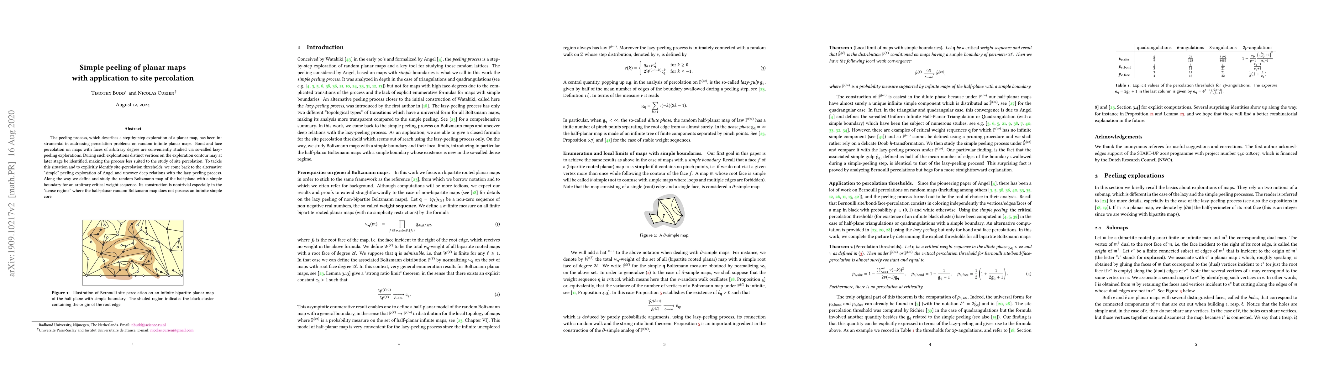 This paper explores the simple peeling process for planar maps to address site percolation problems, contrasting it with the lazy-peeling method. It introduces the random Boltzmann map construction for the half-plane, especially in dense regimes, to identify site-percolation thresholds.