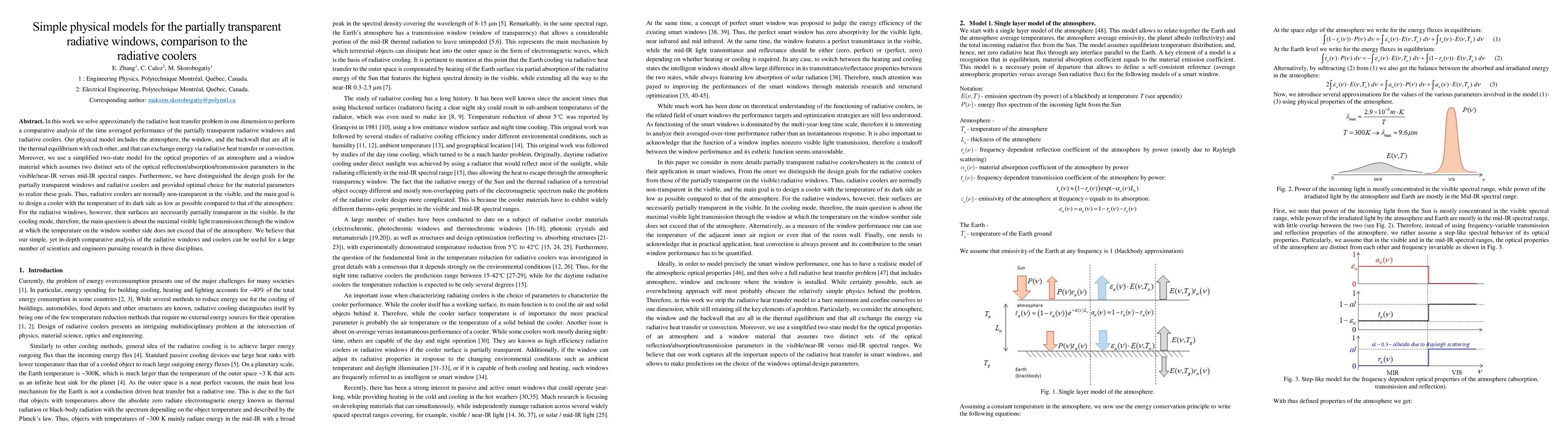 This research compares radiative windows and coolers using simplified models, finding distinct design goals: coolers aim for low dark-side temperatures in non-visible ranges, while windows prioritize maximal visible light transmission without exceeding atmospheric temperature. The study provides valuable insights for scientists and engineers in these fields.