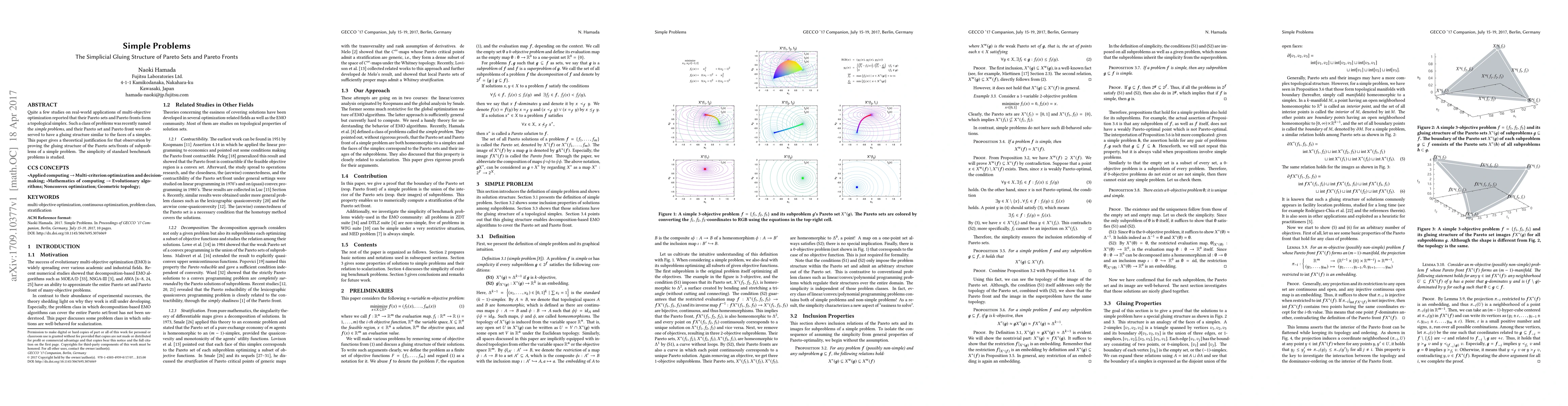 This paper theoretically justifies the observed topological simplex structure in Pareto sets and fronts of simple problems in multi-objective optimization, proving their gluing structure akin to a simplex's faces. It also examines the simplicity of standard benchmark problems.
