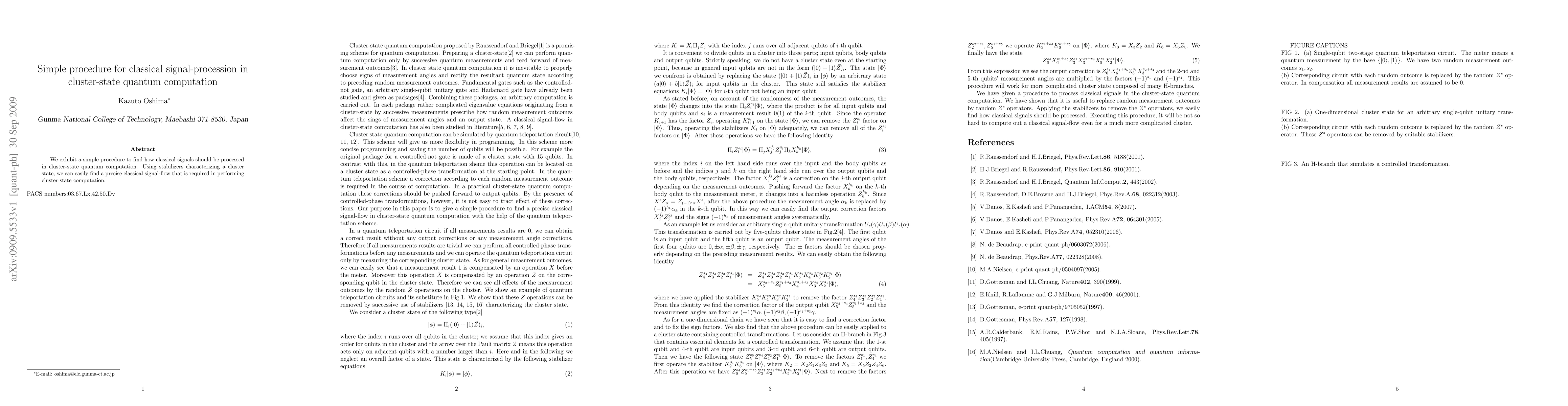Summary: This paper presents a straightforward method for determining how classical signals should be processed in cluster-state quantum computation, leveraging stabilizers to identify the precise classical signal-flow necessary for effective cluster-state operations.