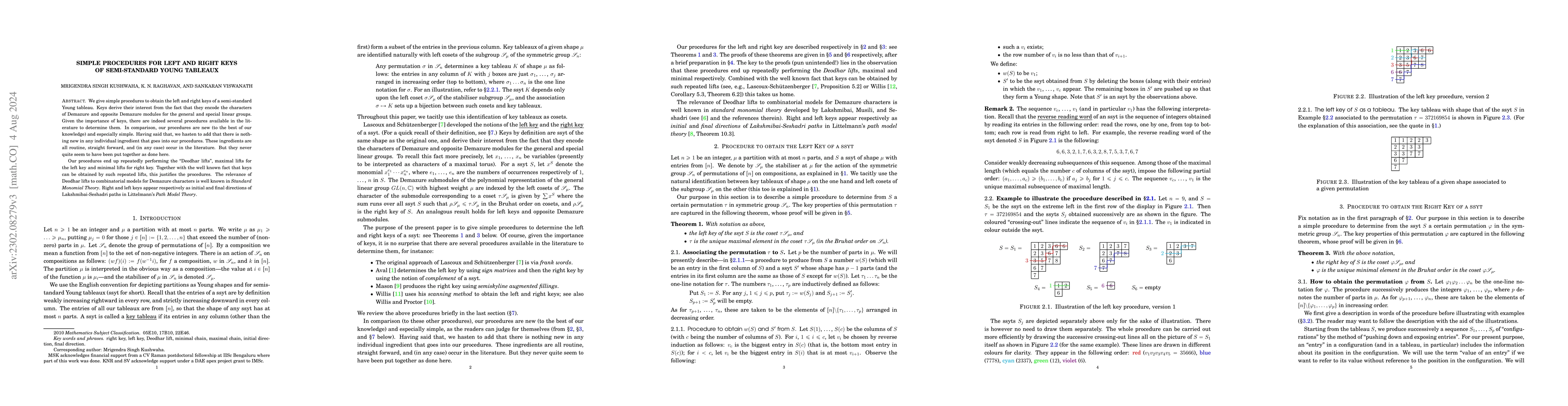Summary: This paper presents straightforward methods for determining the left and right keys associated with semi-standard Young tableaux, enhancing the understanding and computation of these combinatorial objects.