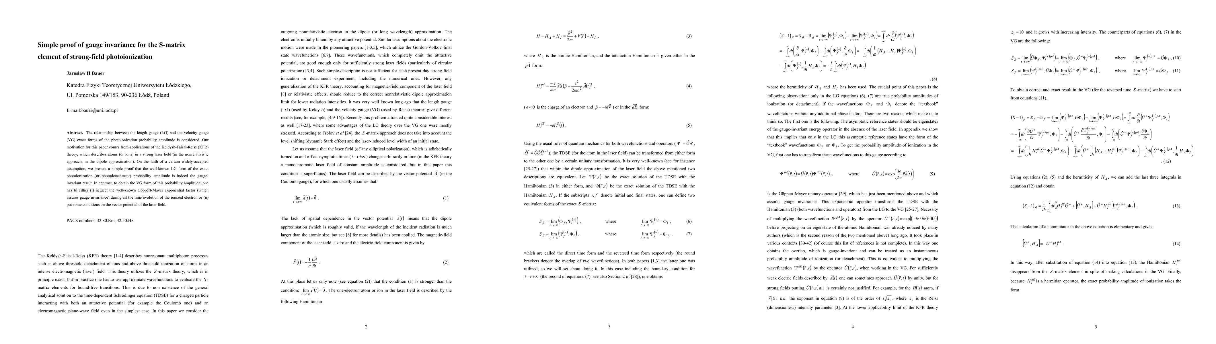 The relationship between the length gauge (LG) and the velocity gauge (VG) exact forms of the photoionization probability amplitude is considered. Our motivation for this paper comes from applications of the Keldysh-Faisal-Reiss (KFR) theory, which describes atoms (or ions) in a strong laser field (in the nonrelativistic approach, in the dipole approximation). On the faith of a certain widely-accepted assumption, we present a simple proof that the well-known LG form of the exact photoionization (or photodetachment) probability amplitude is indeed the gauge-invariant result. In contrast, to obtain the VG form of this probability amplitude, one has to either (i) neglect the well-known Goeppert-Mayer exponential factor (which assures gauge invariance) during all the time evolution of the ionized electron or (ii) put some conditions on the vector potential of the laser field.