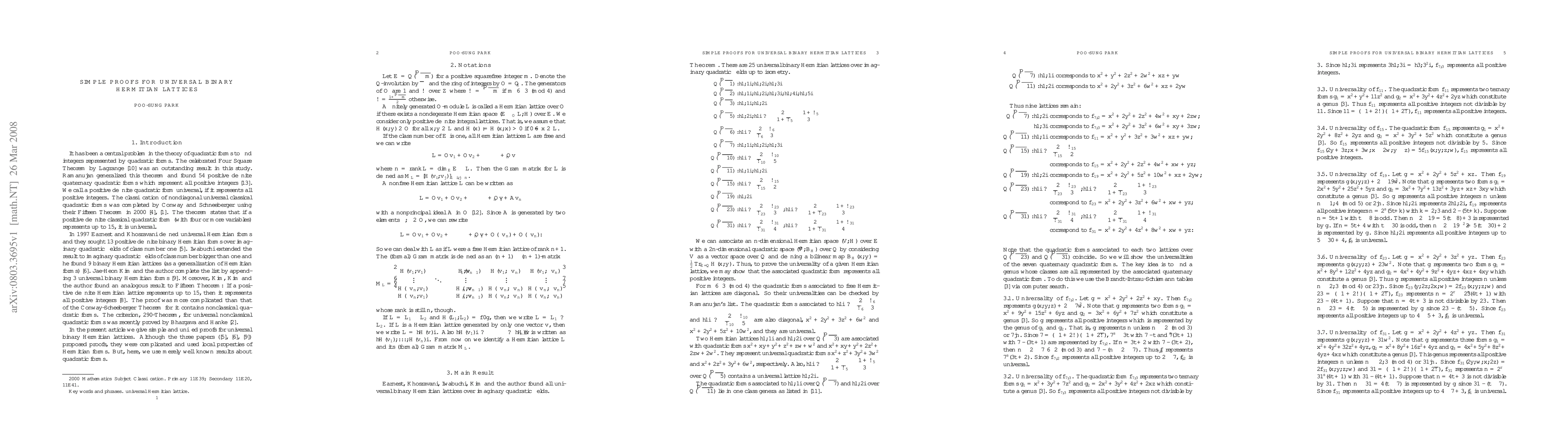 If a positive definite Hermitian lattice represents all positive integers, we call it universal. Several mathematicians, including the author, found 25 universal binary Hermitian lattices. But their ad hoc proofs are complicated. We give simple and unified proofs.