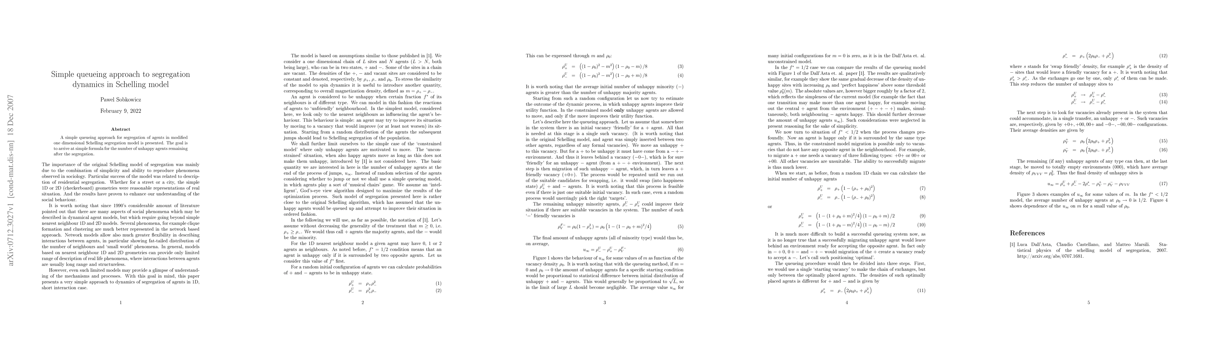 Summary: This paper introduces a straightforward queueing method to analyze the segregation dynamics in a modified one-dimensional Schelling model, aiming to derive a simple formula for the count of dissatisfied agents post-segregation.