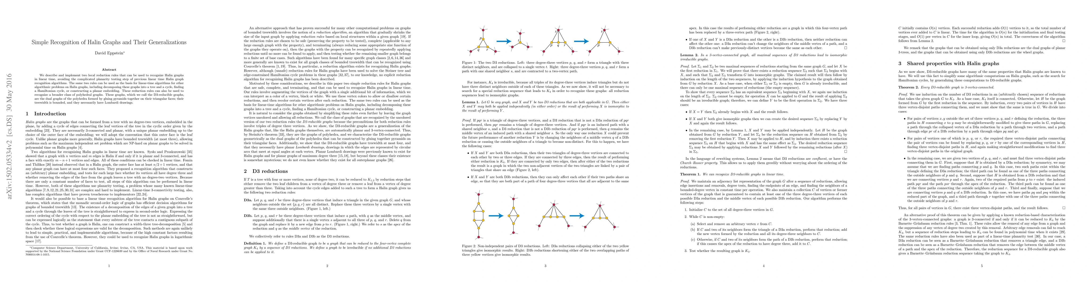 This paper presents two linear-time local reduction rules for recognizing Halin graphs without planarity testing, enabling efficient decomposition, Hamiltonian cycle finding, and planar embedding. The rules also apply to a broader class of polyhedral graphs termed D3-reducible graphs, which have bounded treewidth and Lombardi drawings.
