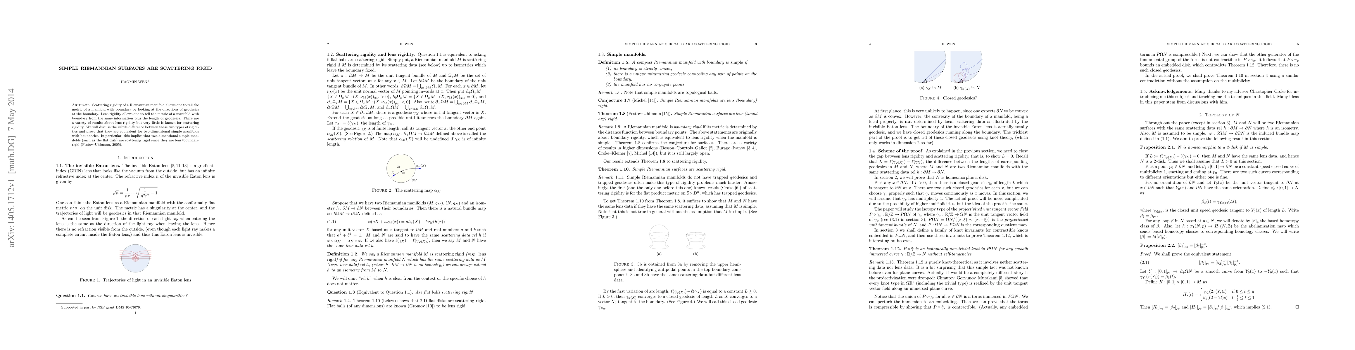 Scattering rigidity of a Riemannian manifold allows one to tell the metric of a manifold with boundary by looking at the directions of geodesics at the boundary. Lens rigidity allows one to tell the metric of a manifold with boundary from the same information plus the length of geodesics. There are a variety of results about lens rigidity but very little is known for scattering rigidity. We will discuss the subtle difference between these two types of rigidities and prove that they are equivalent for two-dimensional simple manifolds with boundaries. In particular, this implies that two-dimensional simple manifolds (such as the flat disk) are scattering rigid since they are lens/boundary rigid (Pestov--Uhlmann, 2005).