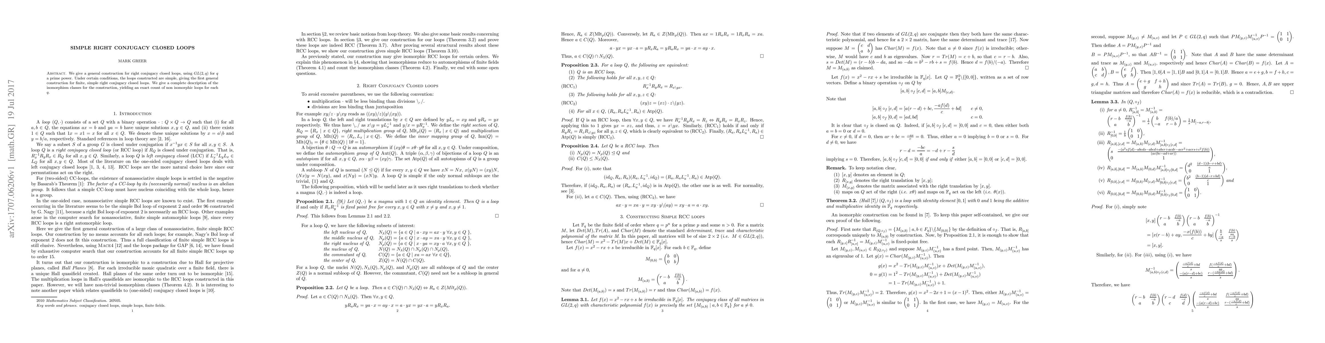This paper presents a method for constructing simple right conjugacy closed loops using $GL(2,q)$, where $q$ is a prime power, and provides an exact count of non-isomorphic loops for each $q$. It also gives a complete description of the isomorphism classes for these loops.
