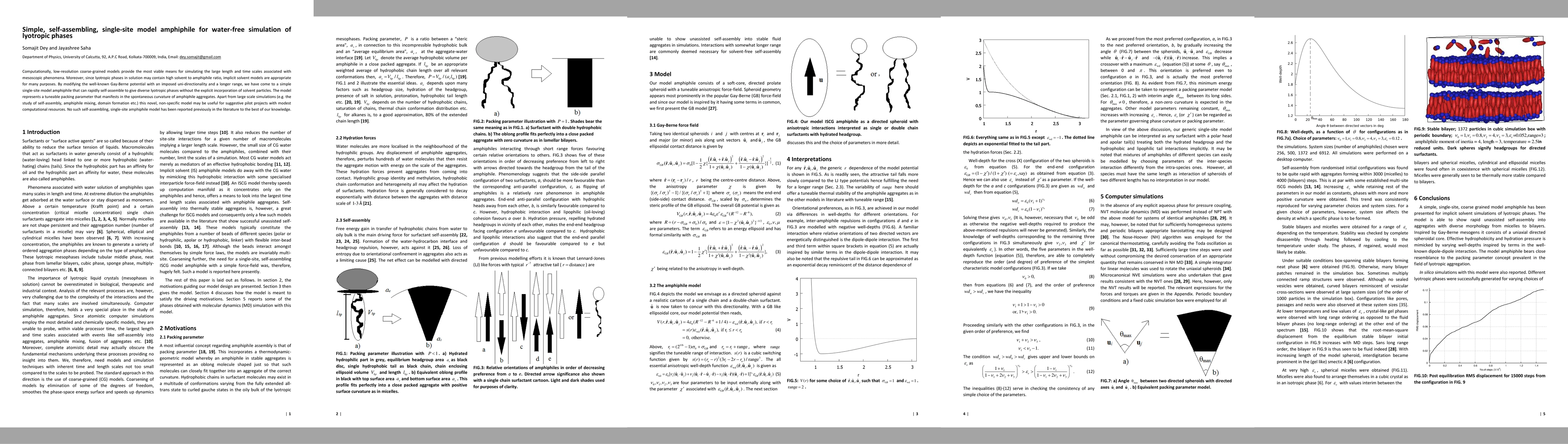 This paper introduces a novel, simple, self-assembling single-site model amphiphile for simulating lyotropic phases without explicit solvent. It modifies the Gay-Berne potential to create a tunable packing parameter that enables diverse phase formation, useful for large-scale simulations and pilot projects with limited computational resources.