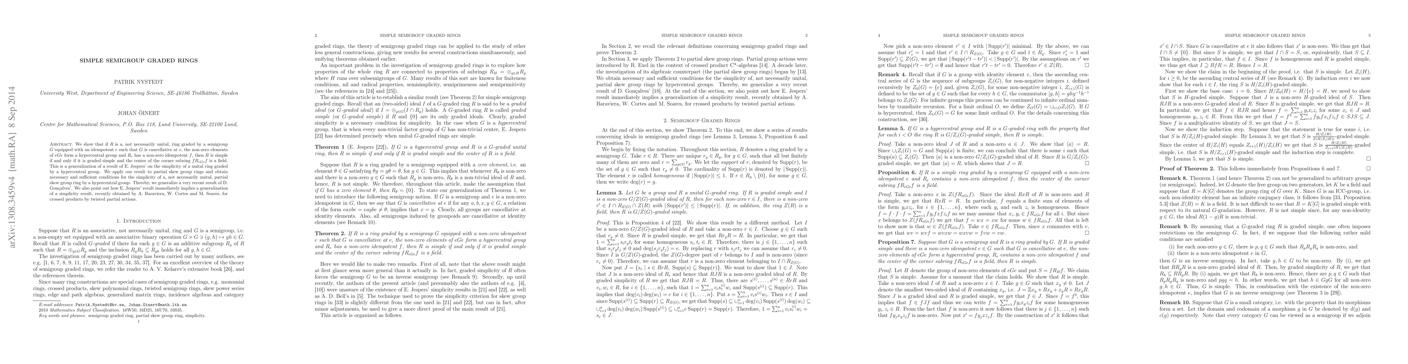 The paper shows that a ring graded by a semigroup with certain properties is simple if and only if it is graded simple and the center of its corner subring is a field.