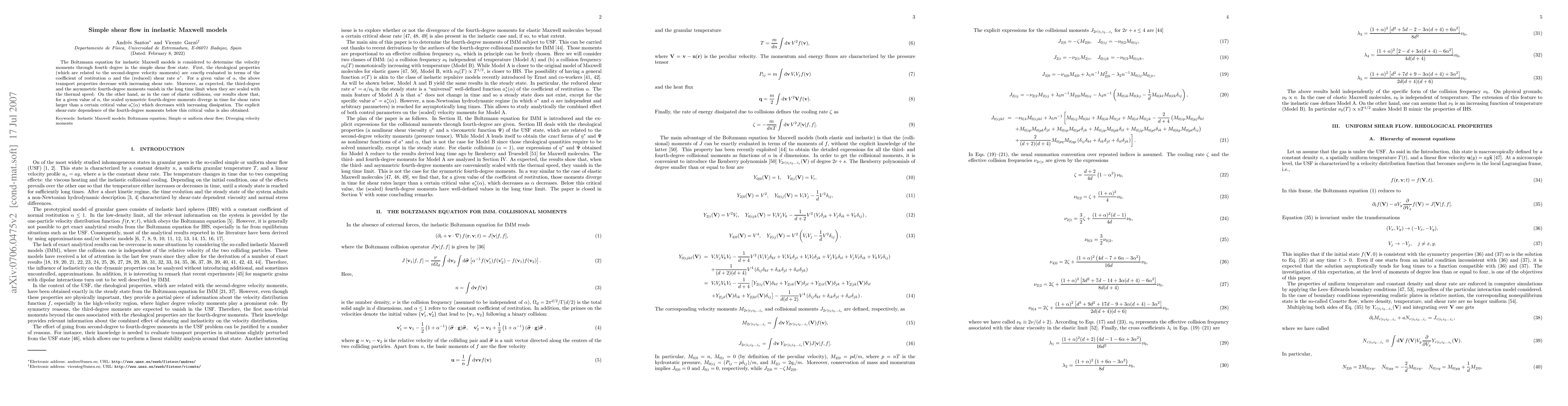 This paper evaluates the rheological properties of inelastic Maxwell models under simple shear flow, finding that transport properties decrease with higher shear rates. It also reveals that, similar to elastic collisions, the symmetric fourth-degree moments diverge in time for shear rates exceeding a critical threshold, which diminishes with increased dissipation.