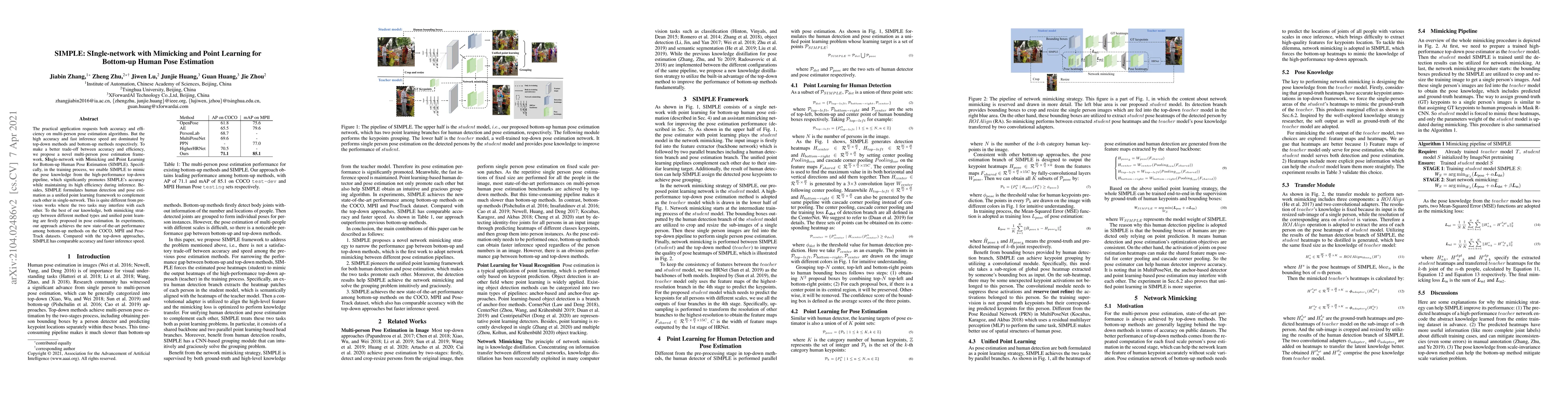 The paper introduces SIMPLE, a novel single-network framework for multi-person pose estimation that combines mimicking top-down methods with unified point learning to achieve high accuracy and efficiency. SIMPLE outperforms other bottom-up methods and matches the accuracy of top-down methods while offering faster inference speeds.
