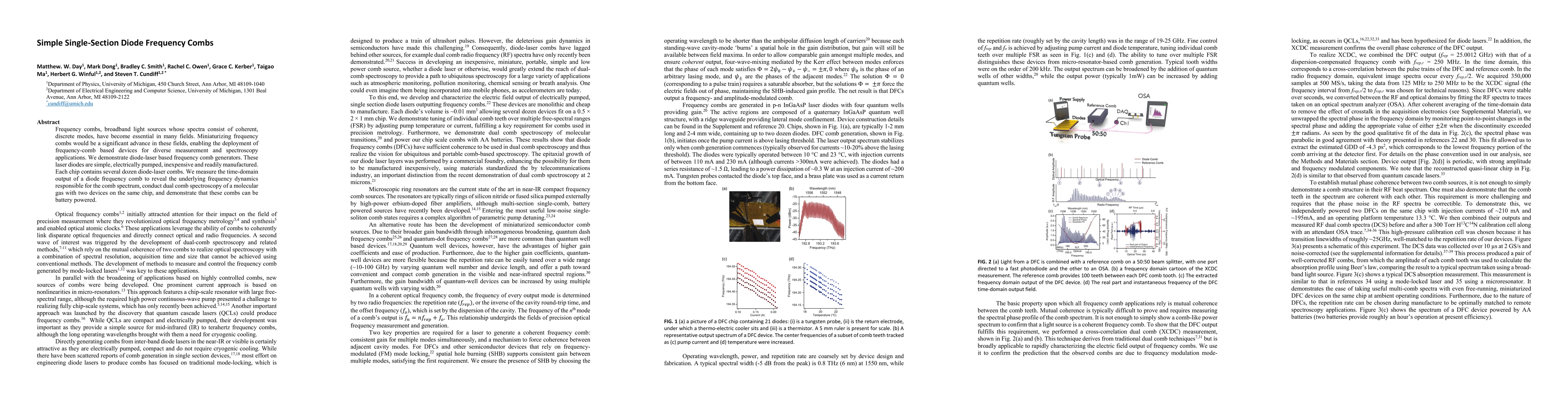 The research demonstrates the development of simple, inexpensive, and battery-powered diode-laser based frequency comb generators that could significantly advance miniaturized frequency-comb technology for diverse applications. The study also conducts dual comb spectroscopy using combs from the same chip and reveals the underlying frequency dynamics through time-domain measurements.