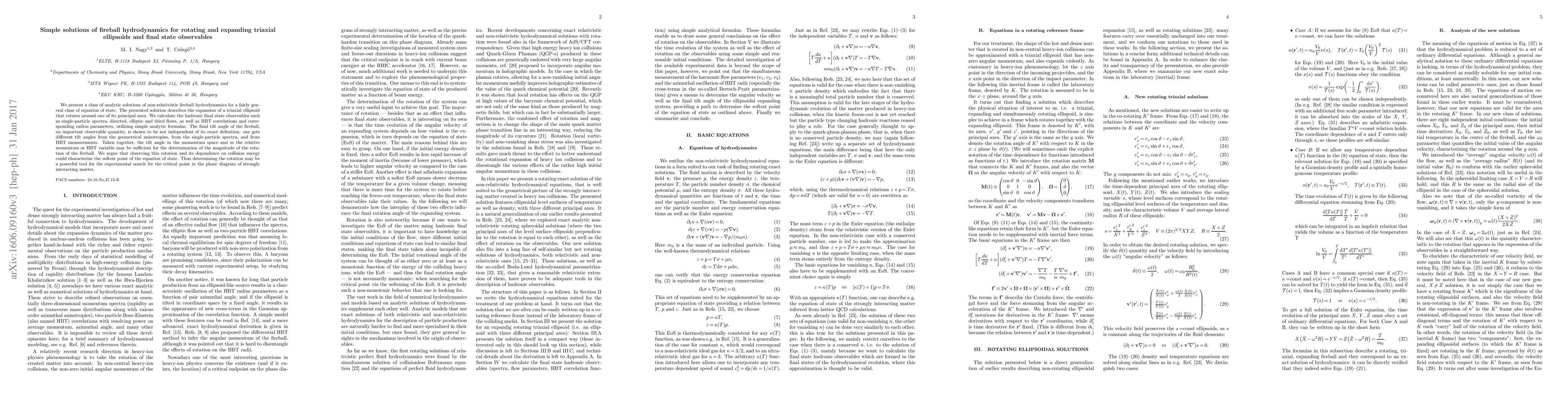 Researchers have found simple analytic solutions for fireball hydrodynamics in rotating and expanding triaxial ellipsoids, which can help determine the rotation of the fireball and its dependence on collision energy, potentially revealing the softness of the equation of state.